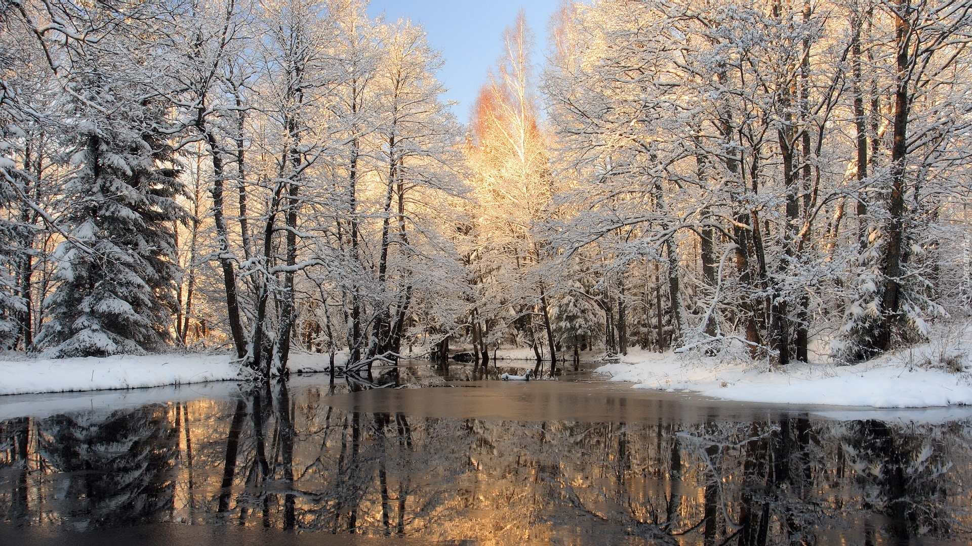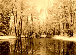 Edytor tapety: Zima, Krajobraz, Rzeka, Drzewa
