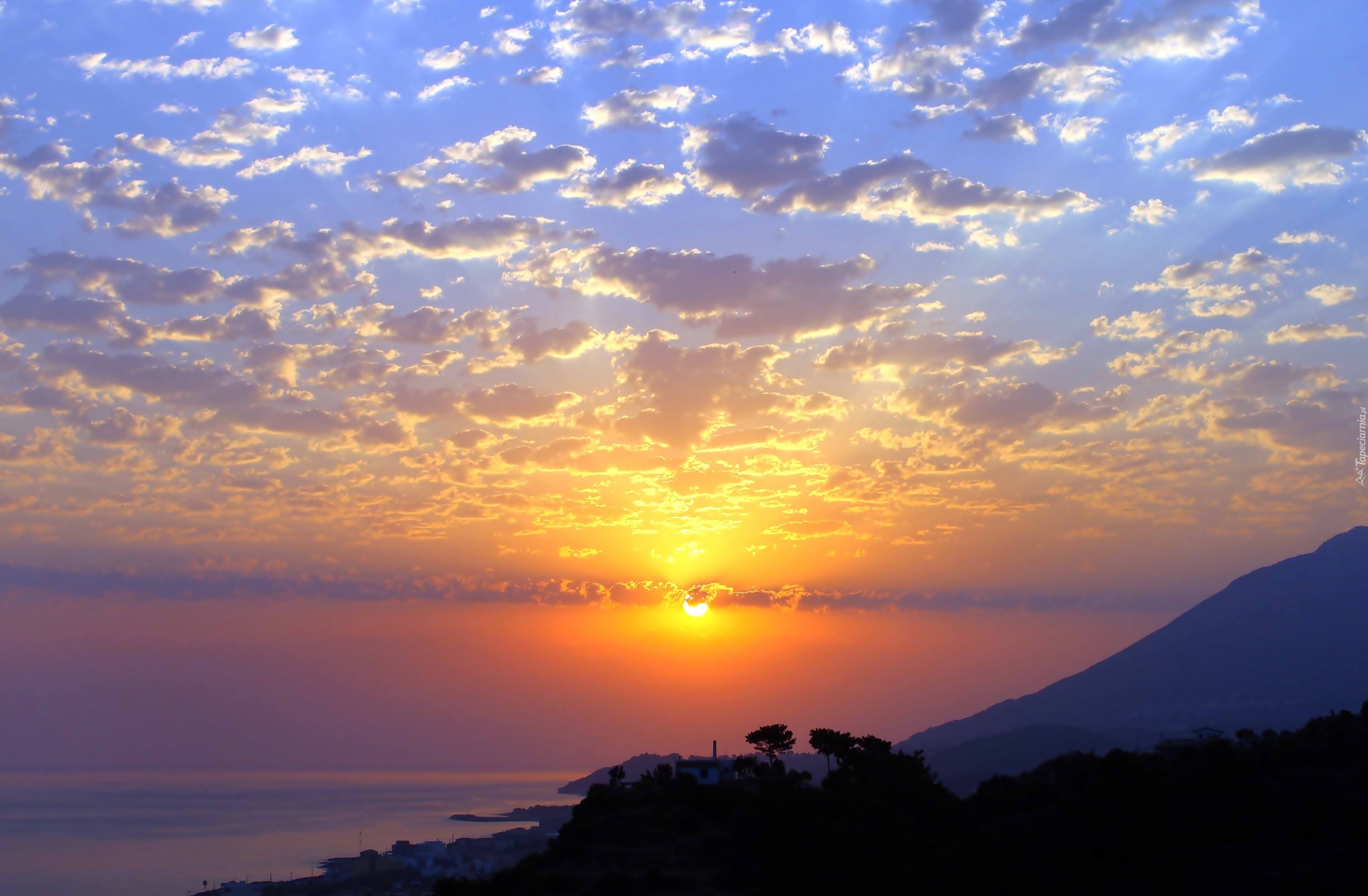 Edytor tapety: Wybrzeże, Chmury, Wschód, Słońca, Morze