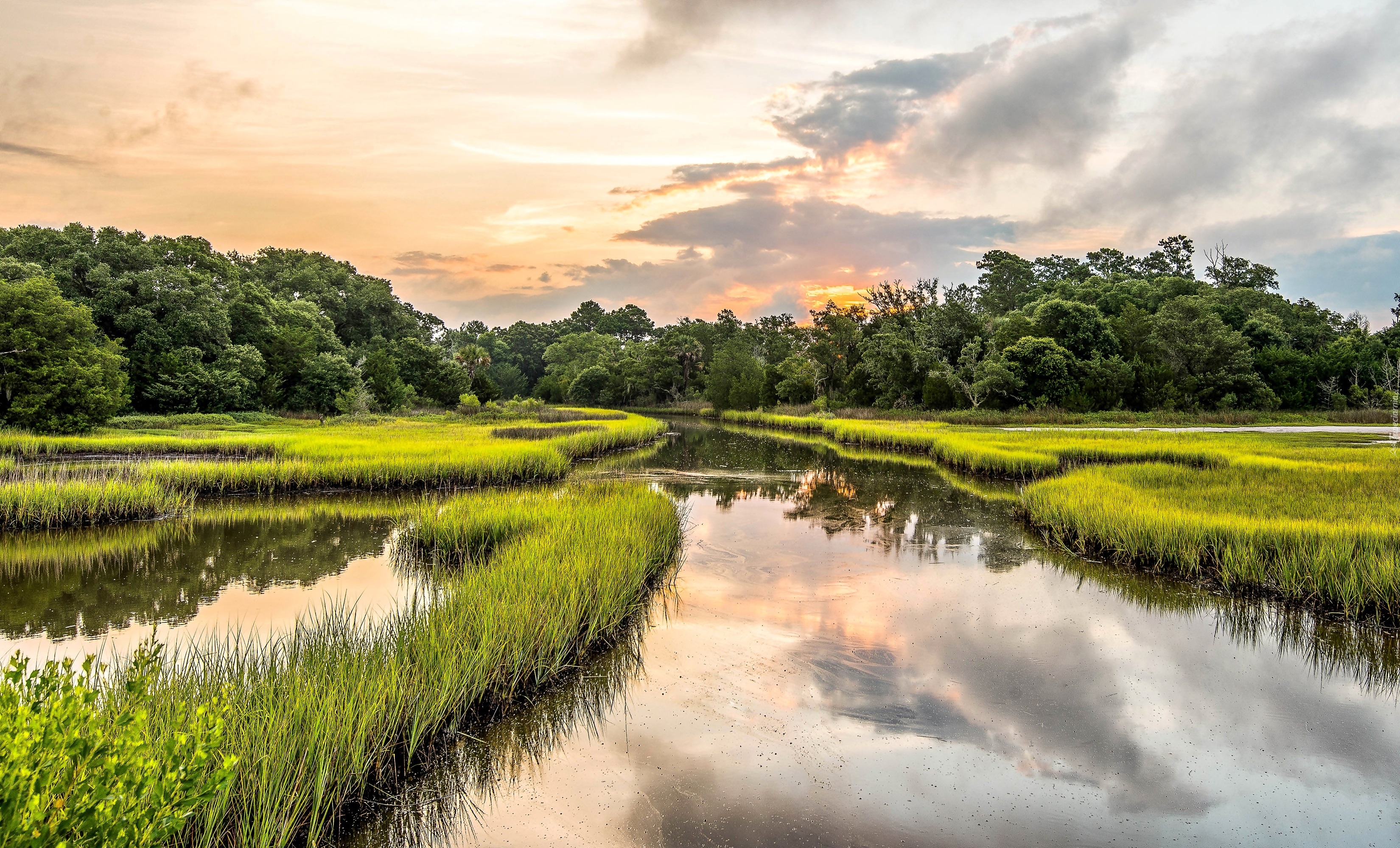 Edytor tapety: Rzeka, Las, Moczary, Chmury, Odbicie