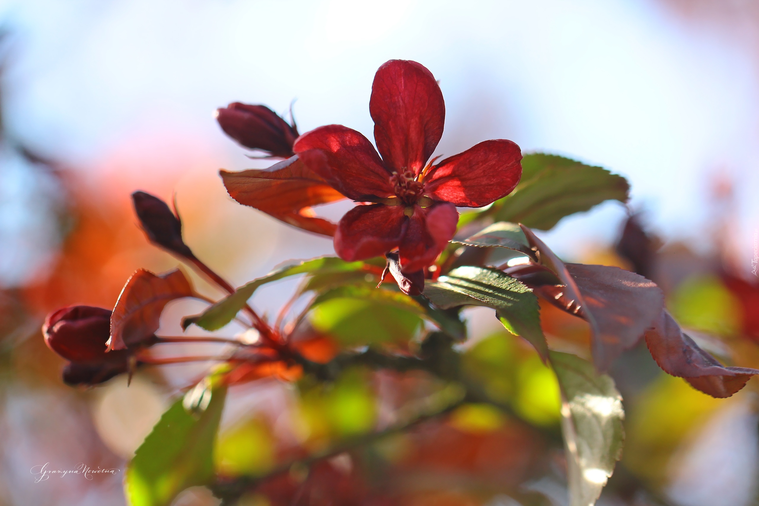 Edytor tapety: Czerwone, Kwiaty, Drzewo, Owocowe