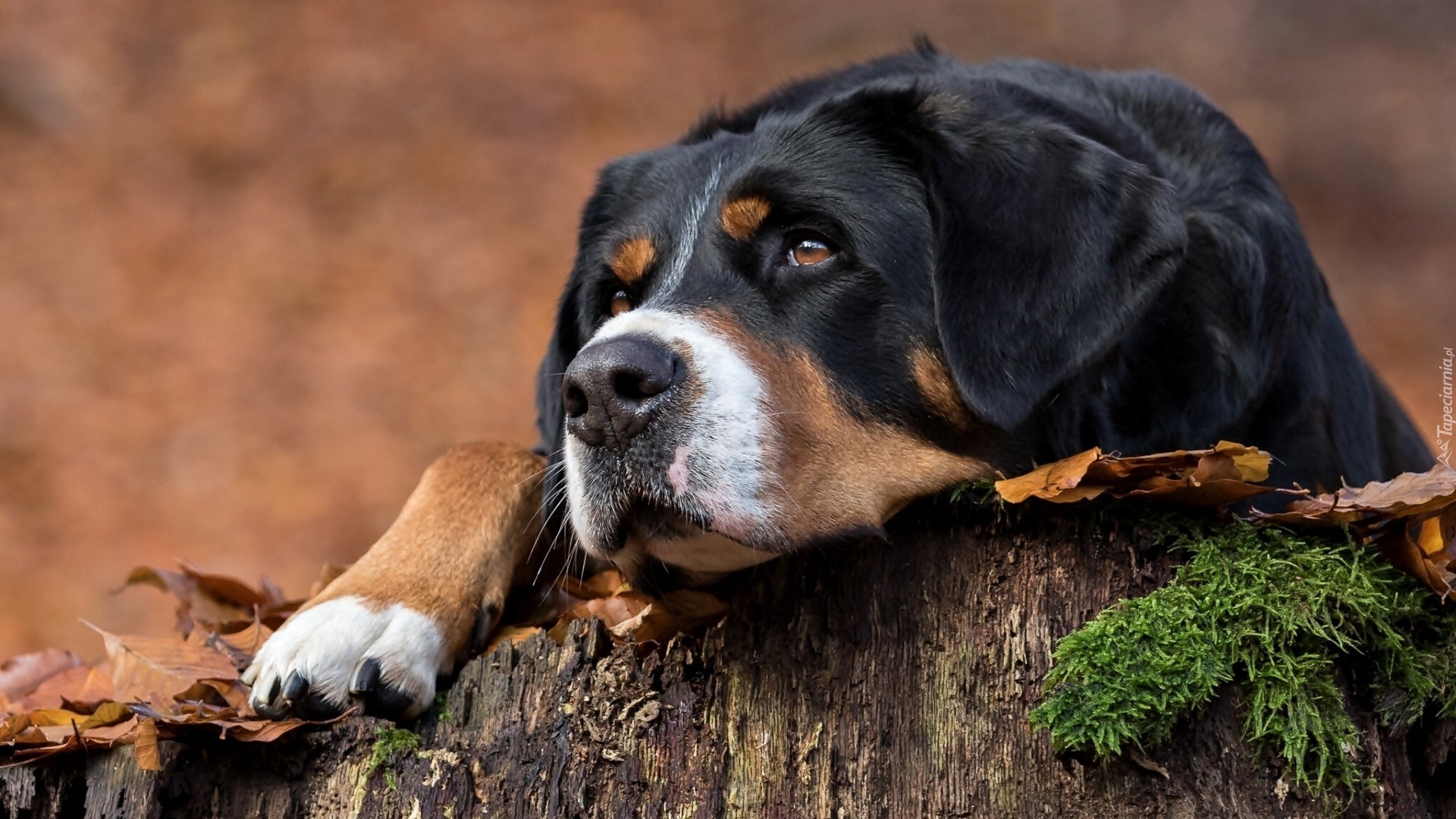 Edytor tapety: Szwajcarski pies pasterski, Pniak