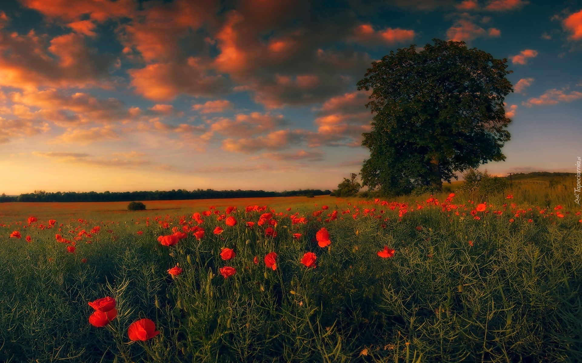 Edytor tapety: Łąka, Maki, Drzewo, Las