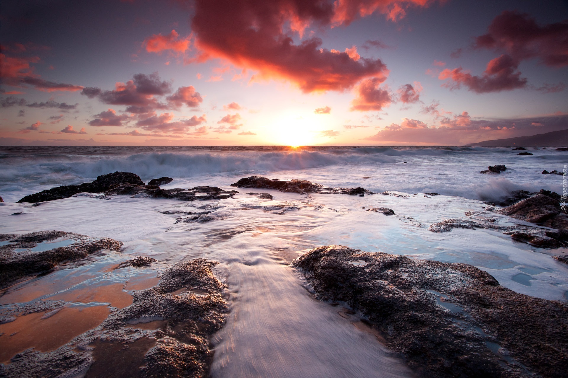 Edytor tapety: Morze, Fale, Zachód, Słońca