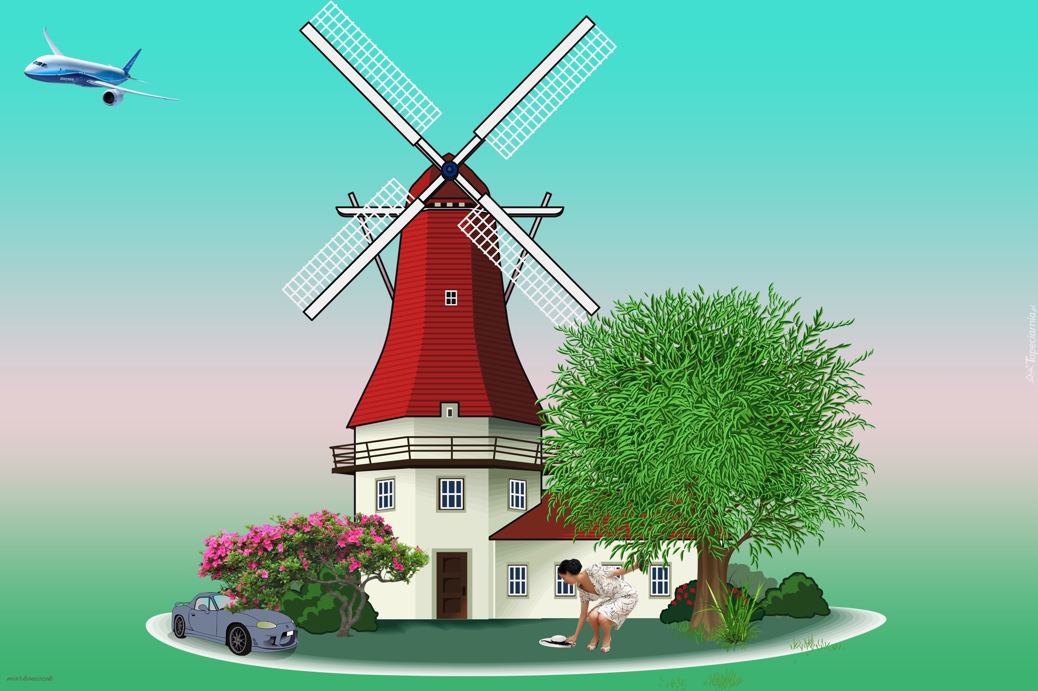Edytor tapety: Grafika, Wiatrak, Drzewa