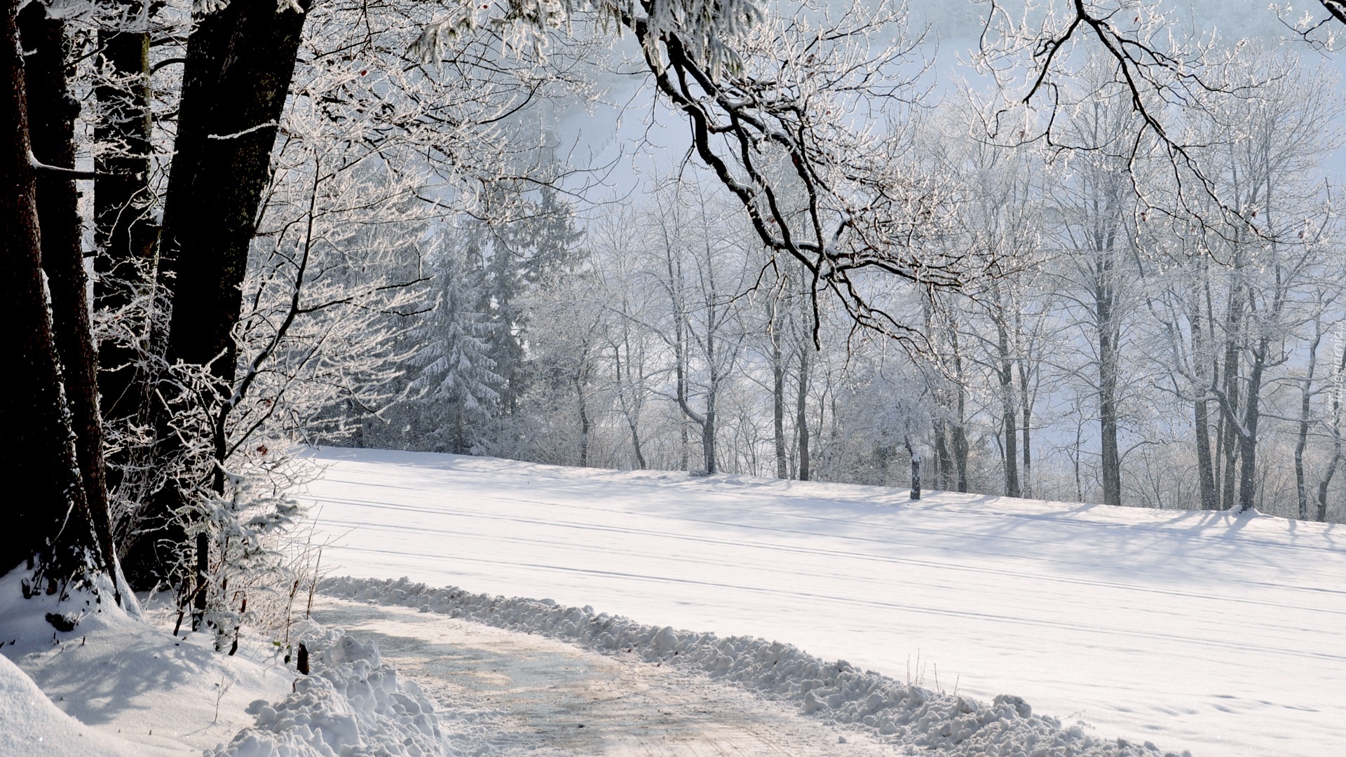 Edytor tapety: Zima, Drzewo, Gałęzie, Droga