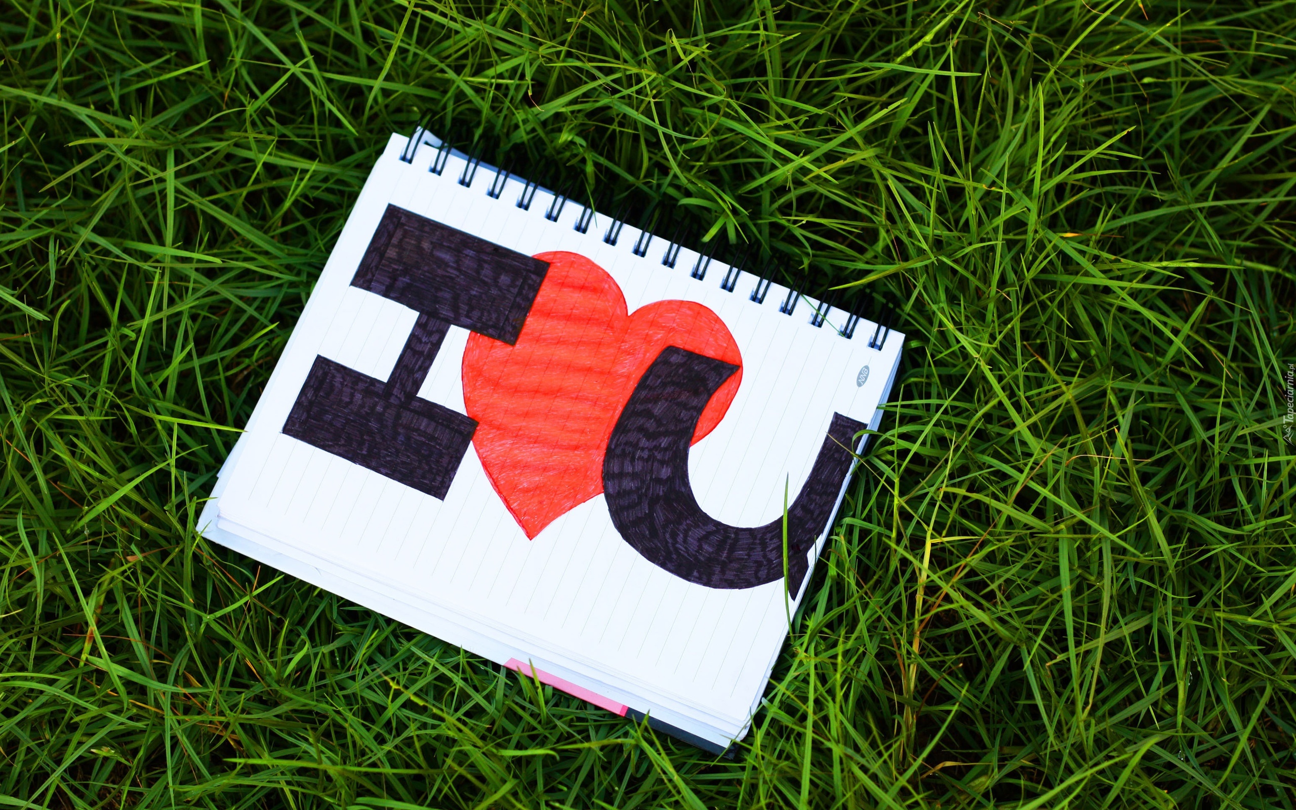 Edytor tapety: Trawa, Zeszyt, Napis