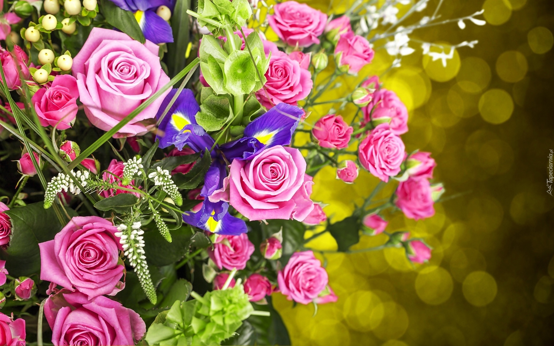 Edytor tapety: Kwiaty, Bukiet, Róże, Irysy