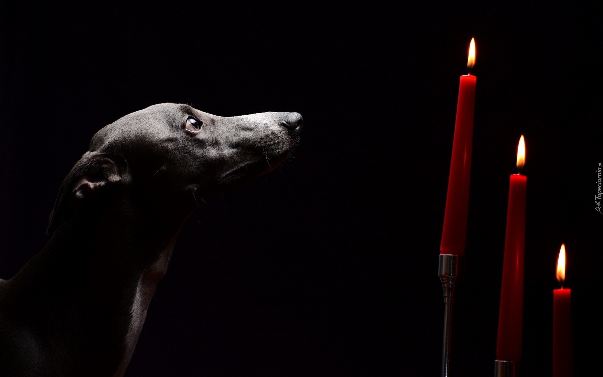 Edytor tapety: Smutny, Pies, Trzy, Świece, Czarne, Tło