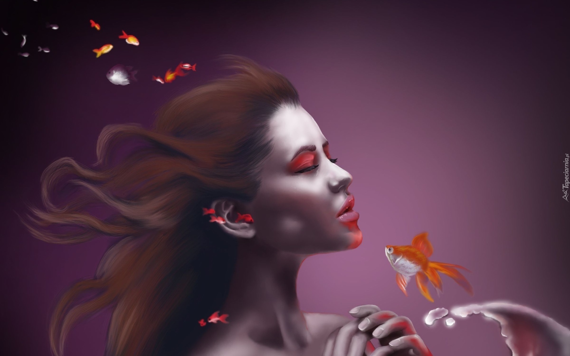 Edytor tapety: Kobieta, Ryby