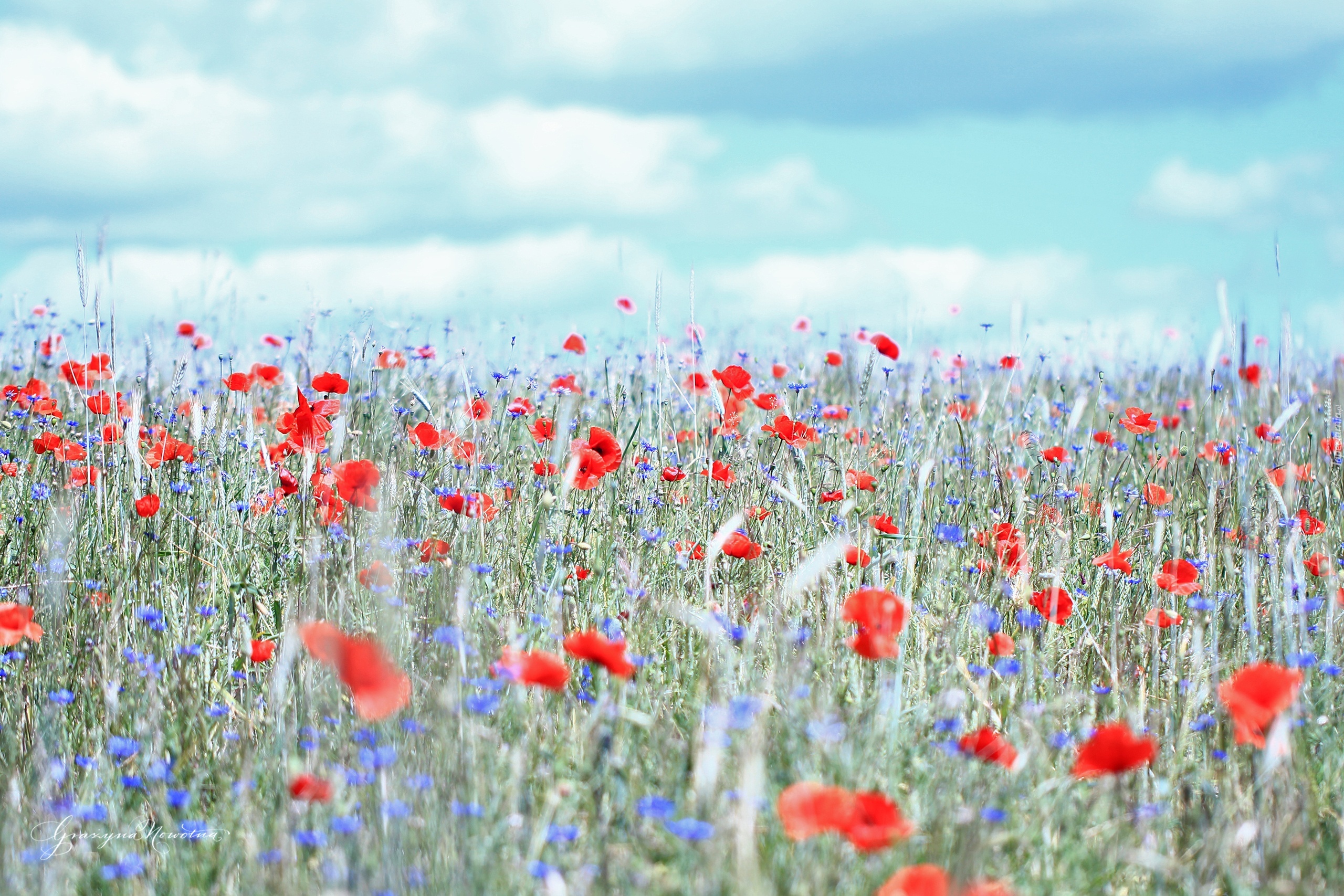 Edytor tapety: Maki, Łąka, Niebo, Lato