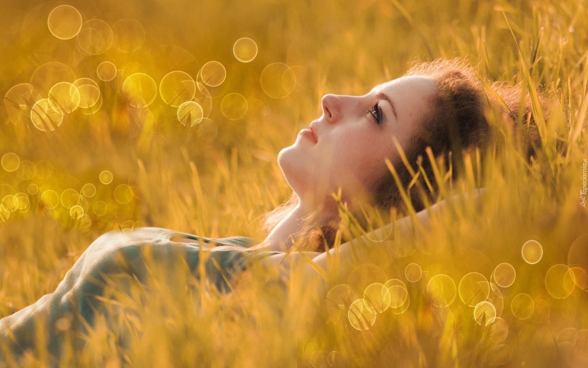 Edytor tapety: Kobieta, Leżąca, Na, Łące