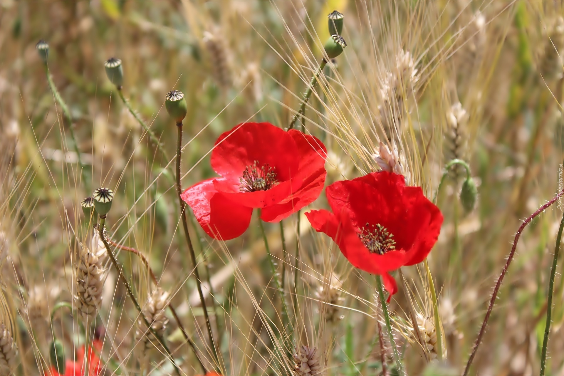 Edytor tapety: Zboże, Kłosy, Pszenicy, Maki