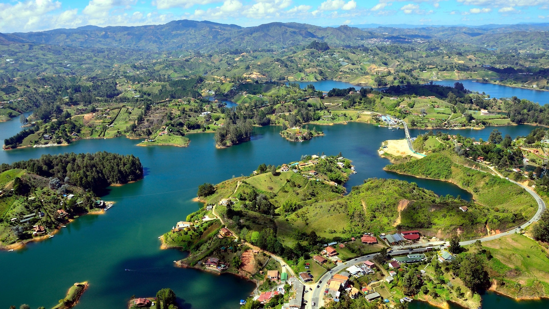 Edytor tapety: Kolumbia, Guatapé, Miasto, Jeziora, Wzgórza