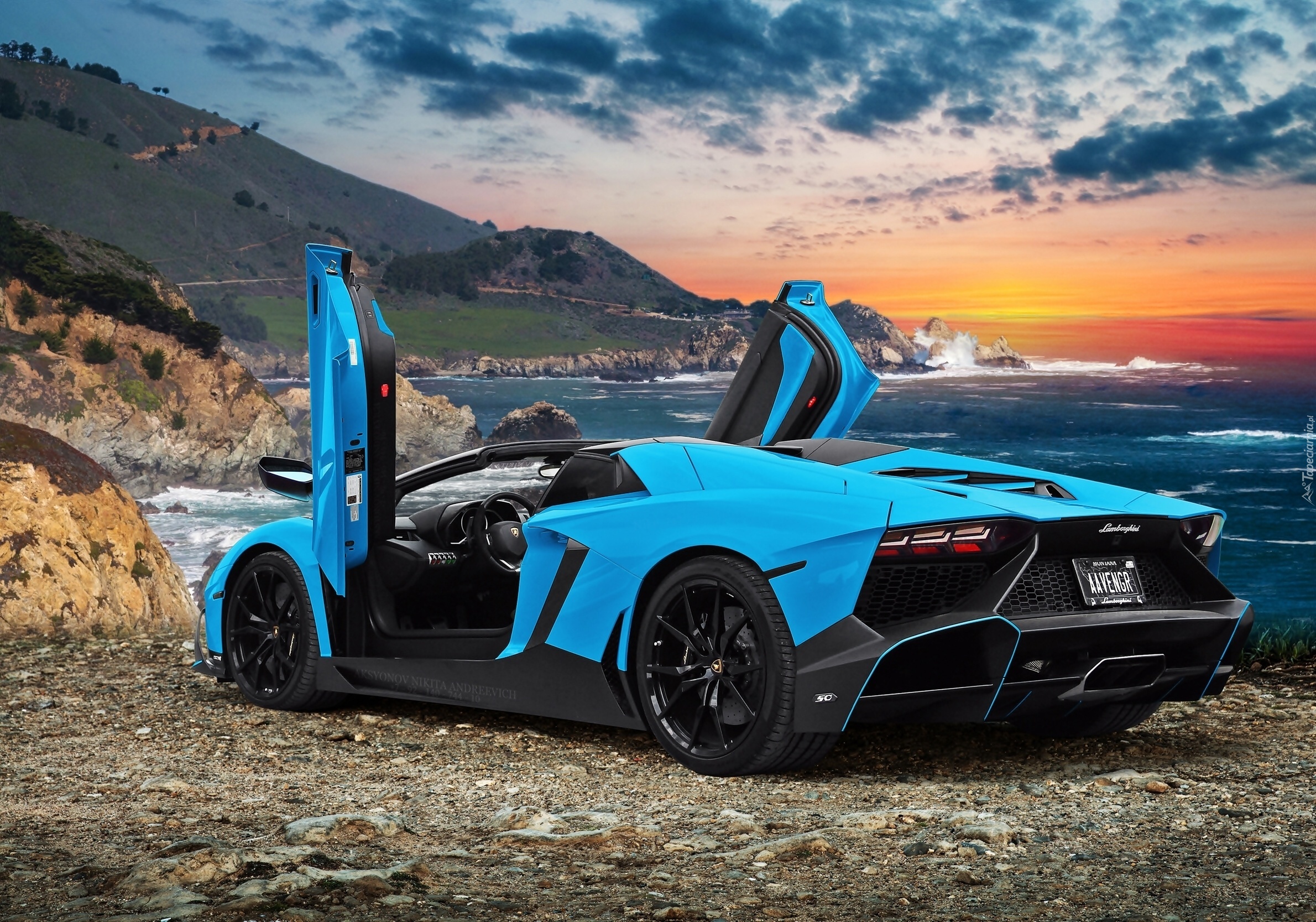 Edytor tapety: Lamborghini, Aventador, Wybrzeże, Zachód, Słońca