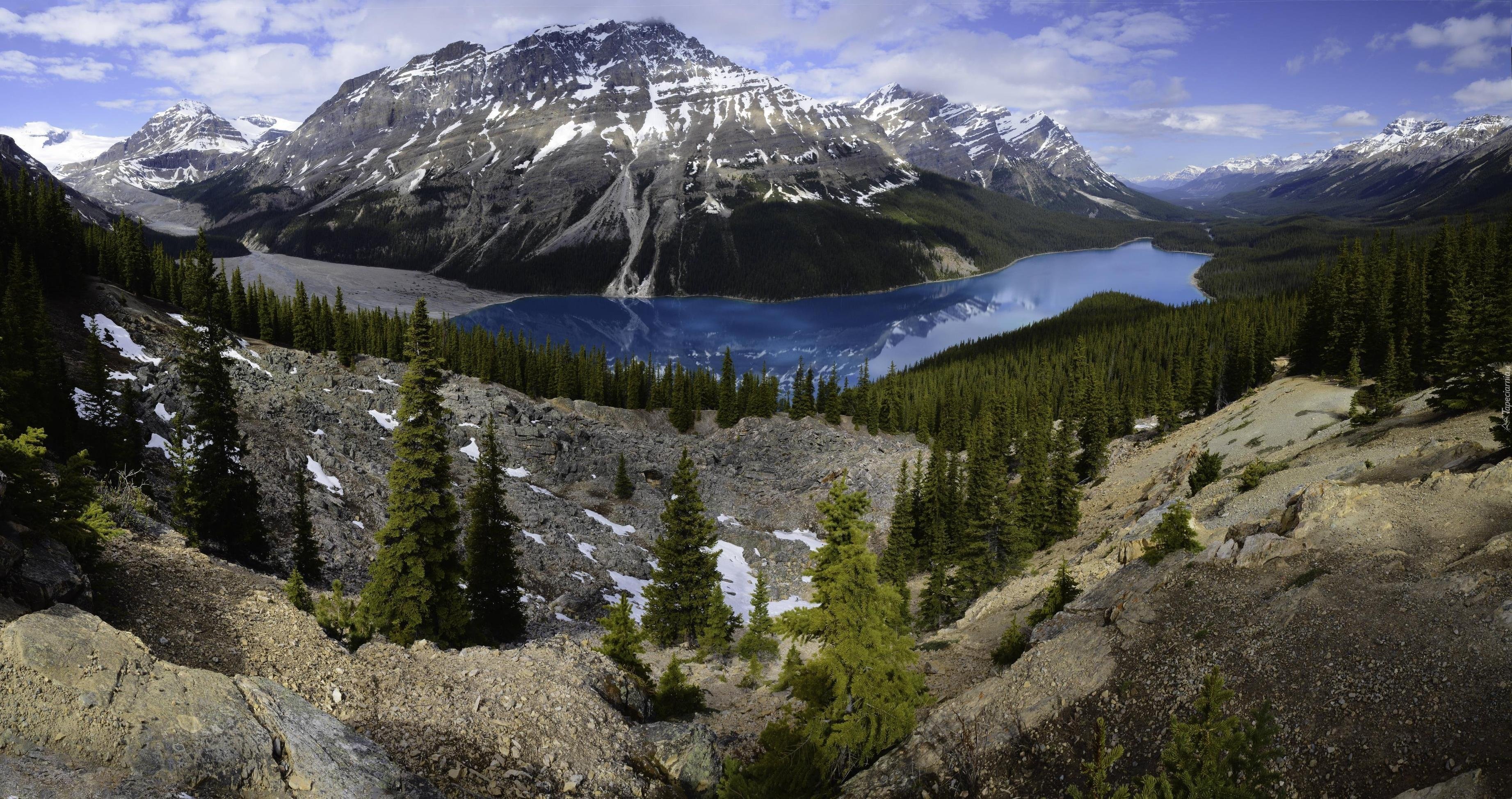 Edytor tapety: Jezioro, Góry, Skały, Las, Drzewa