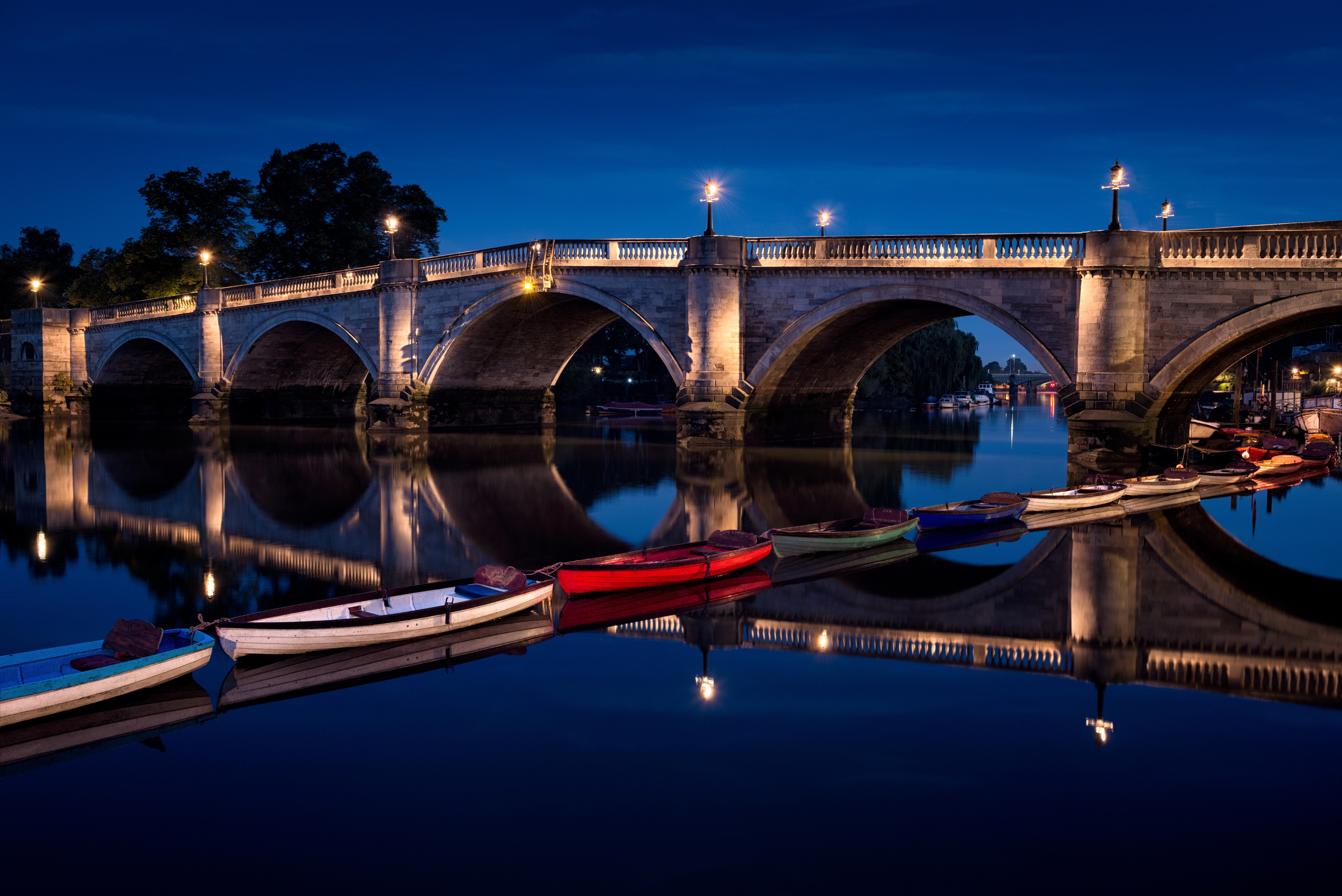 Edytor tapety: Wieczór, Most, Rzeka, Łódki, Wielka Brytania