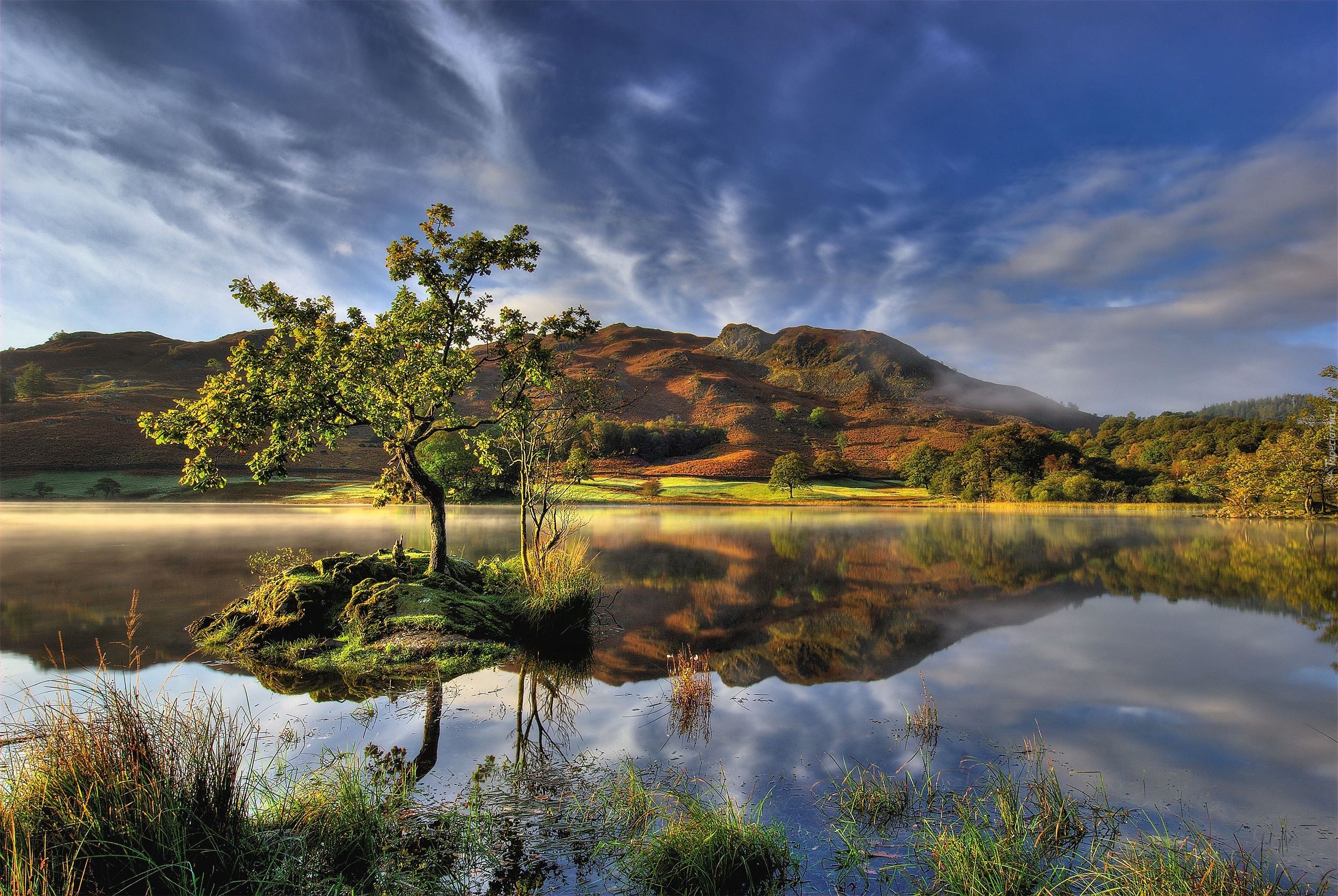Edytor tapety: Jezioro, Góry, Drzewa, Chmury