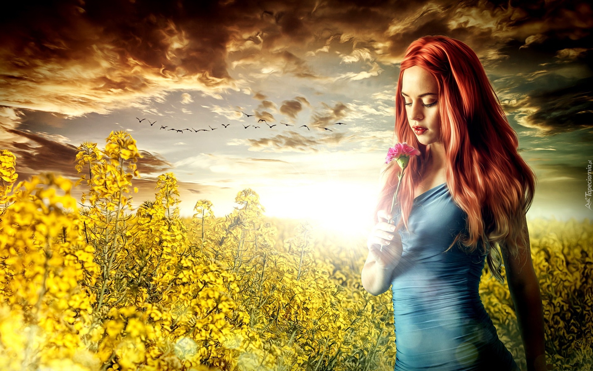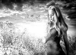 Edytor tapety: Dziewczyna, Kwiat, Chmury