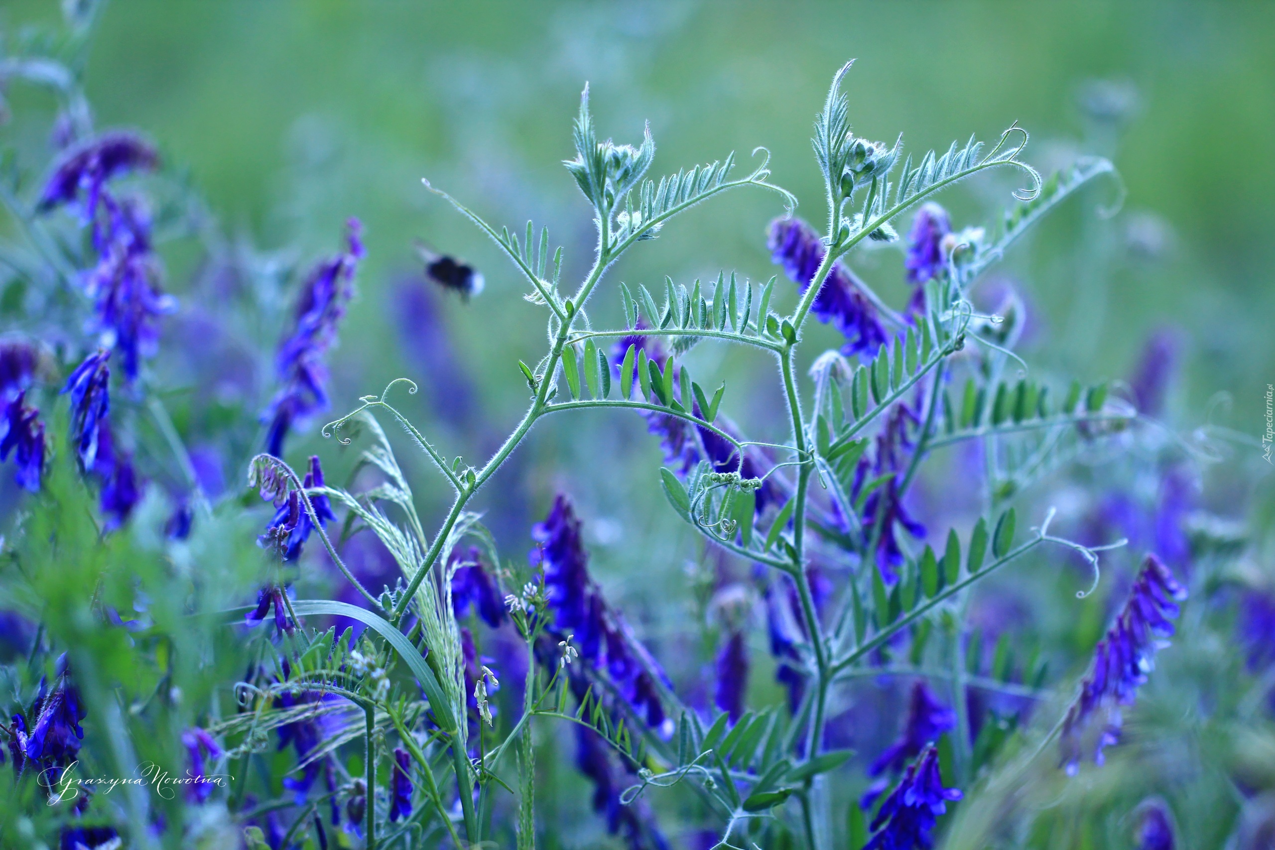 Edytor tapety: Fioletowe, Kwiaty, Łąka, Wyka Polna