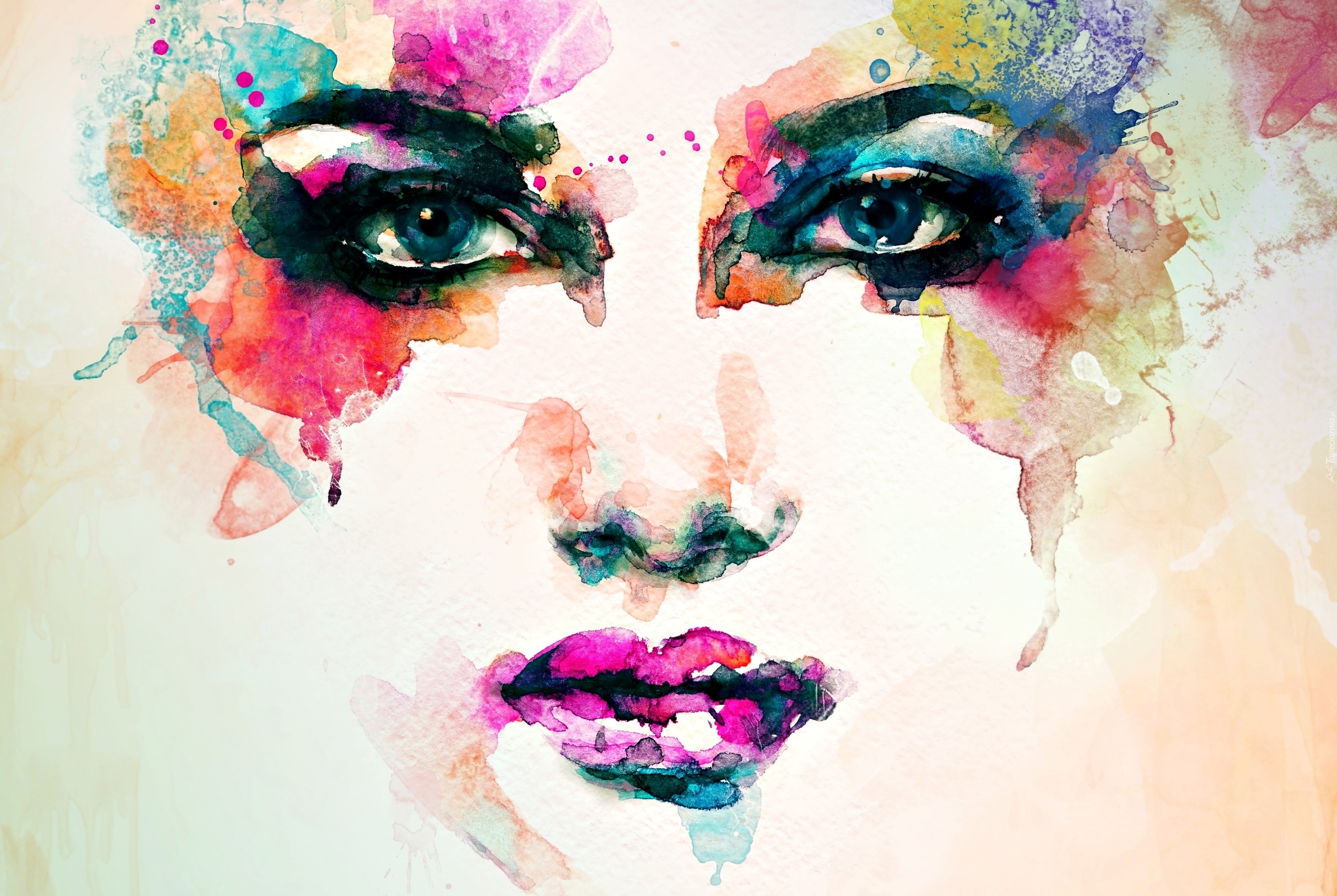 Edytor tapety: Kobieta, Spojrzenie, Obraz, Akwarela