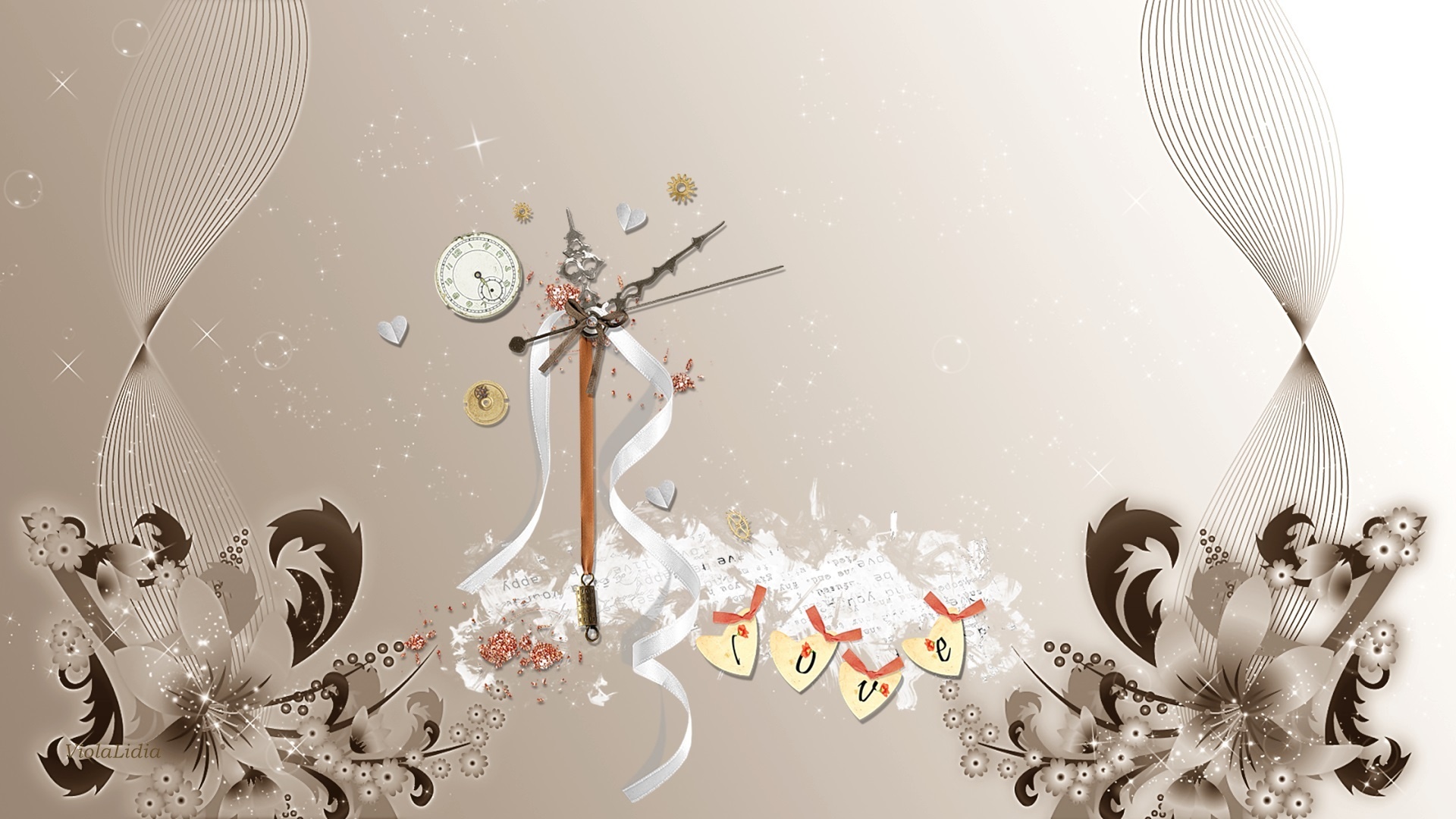 Edytor tapety: Grafika, Miłość, Kwiaty, Zegarek