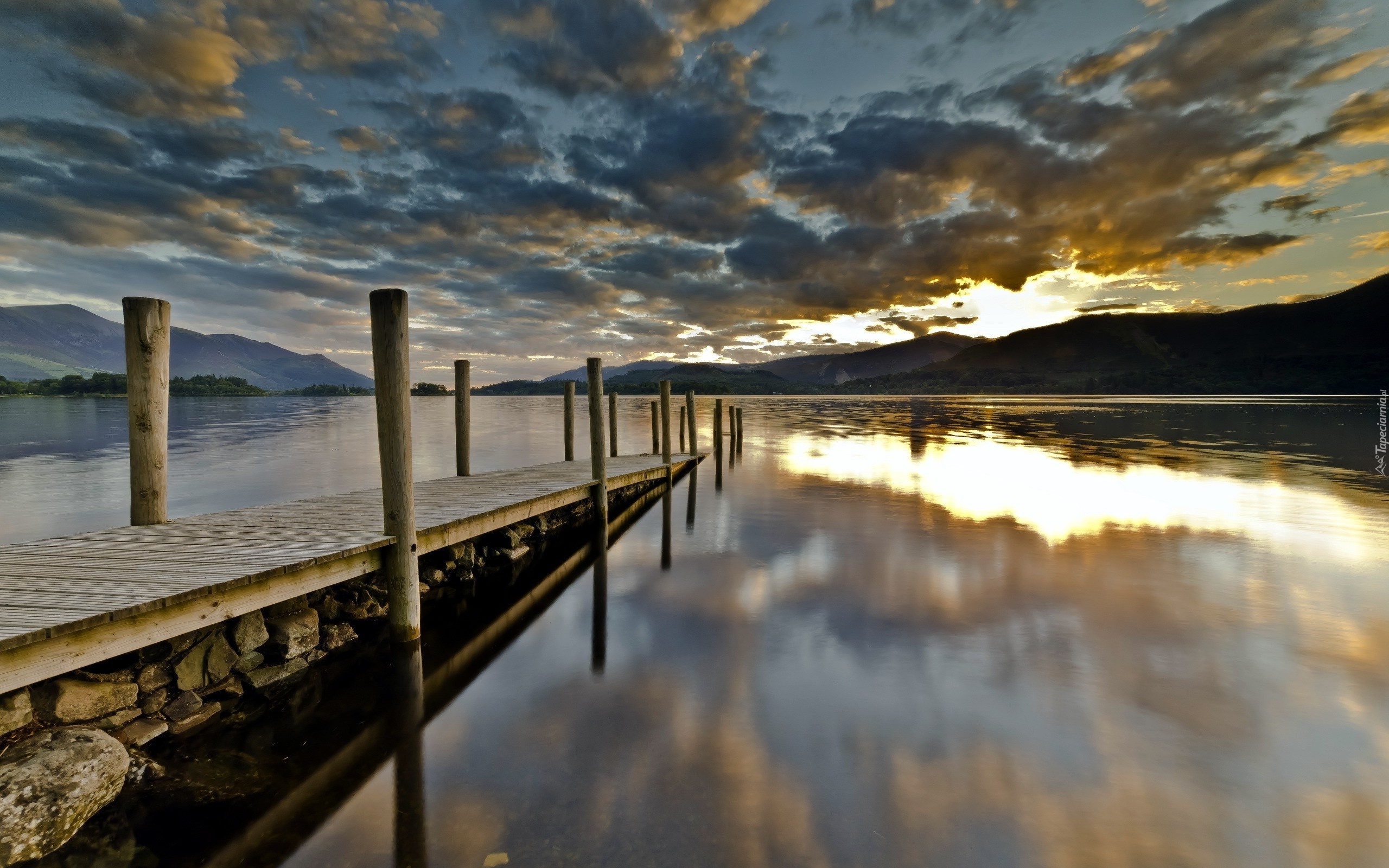 Edytor tapety: Chmury, Jezioro, Pomost, Góry, Lasy
