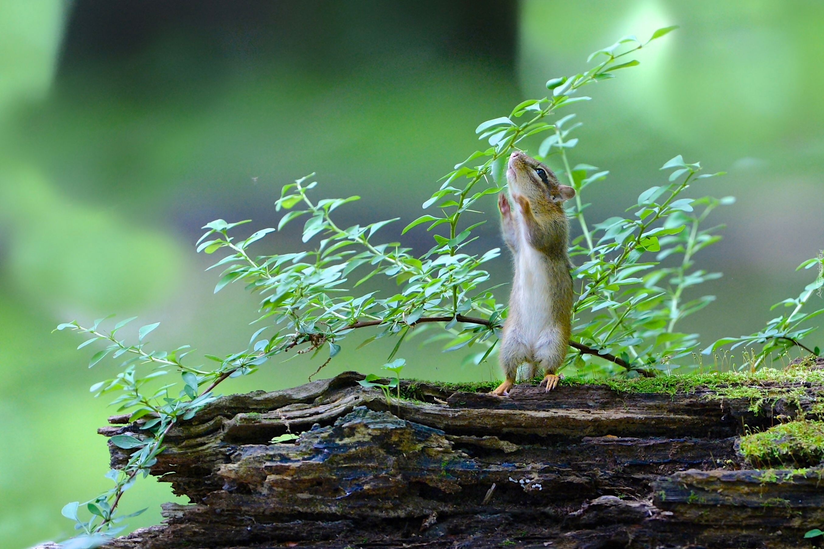 Edytor tapety: Wiewiórka, Chipmunk, Drzewo, Gałąź, Liście