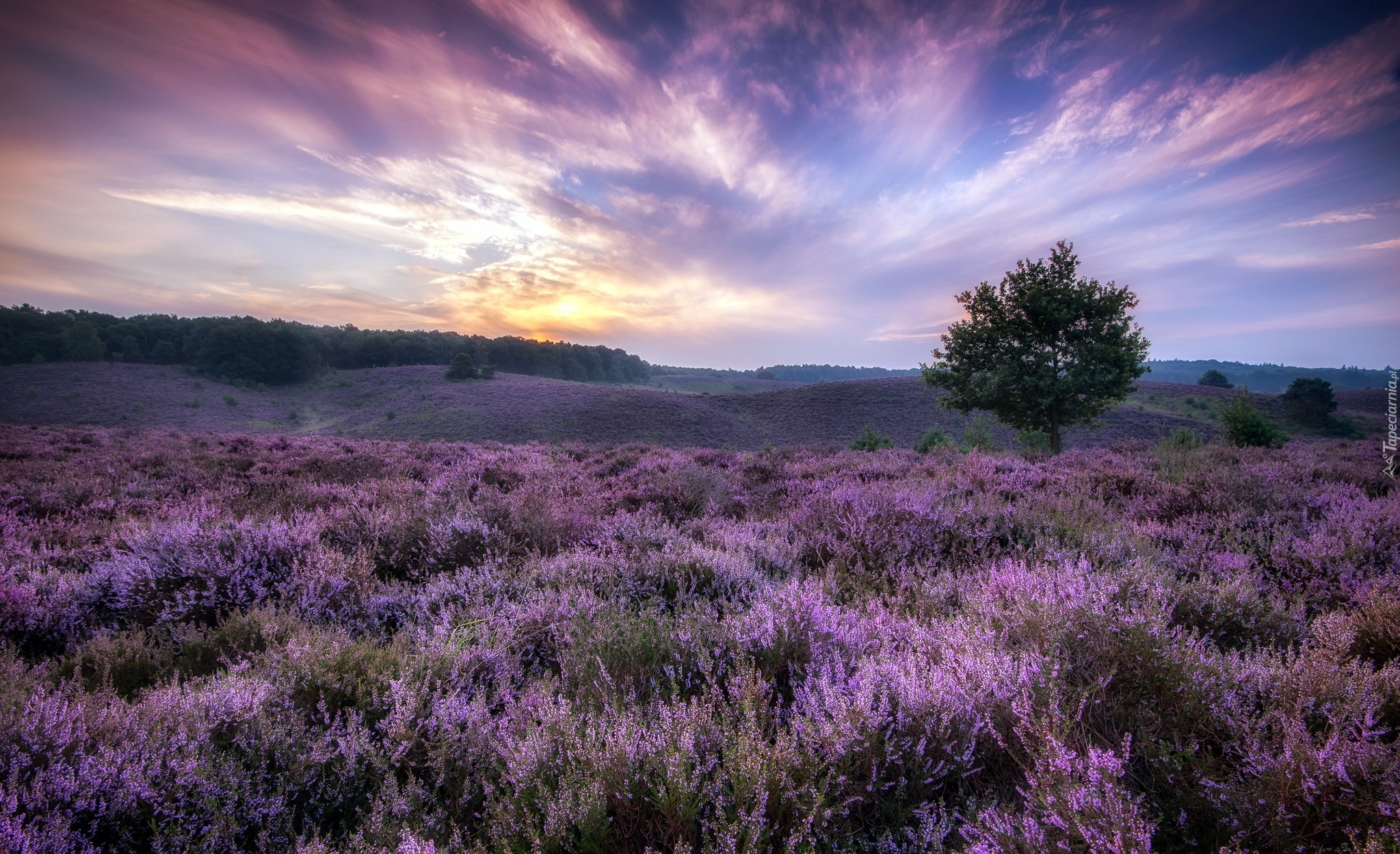 Edytor tapety: Chmury, Wrzosowisko, Drzewo