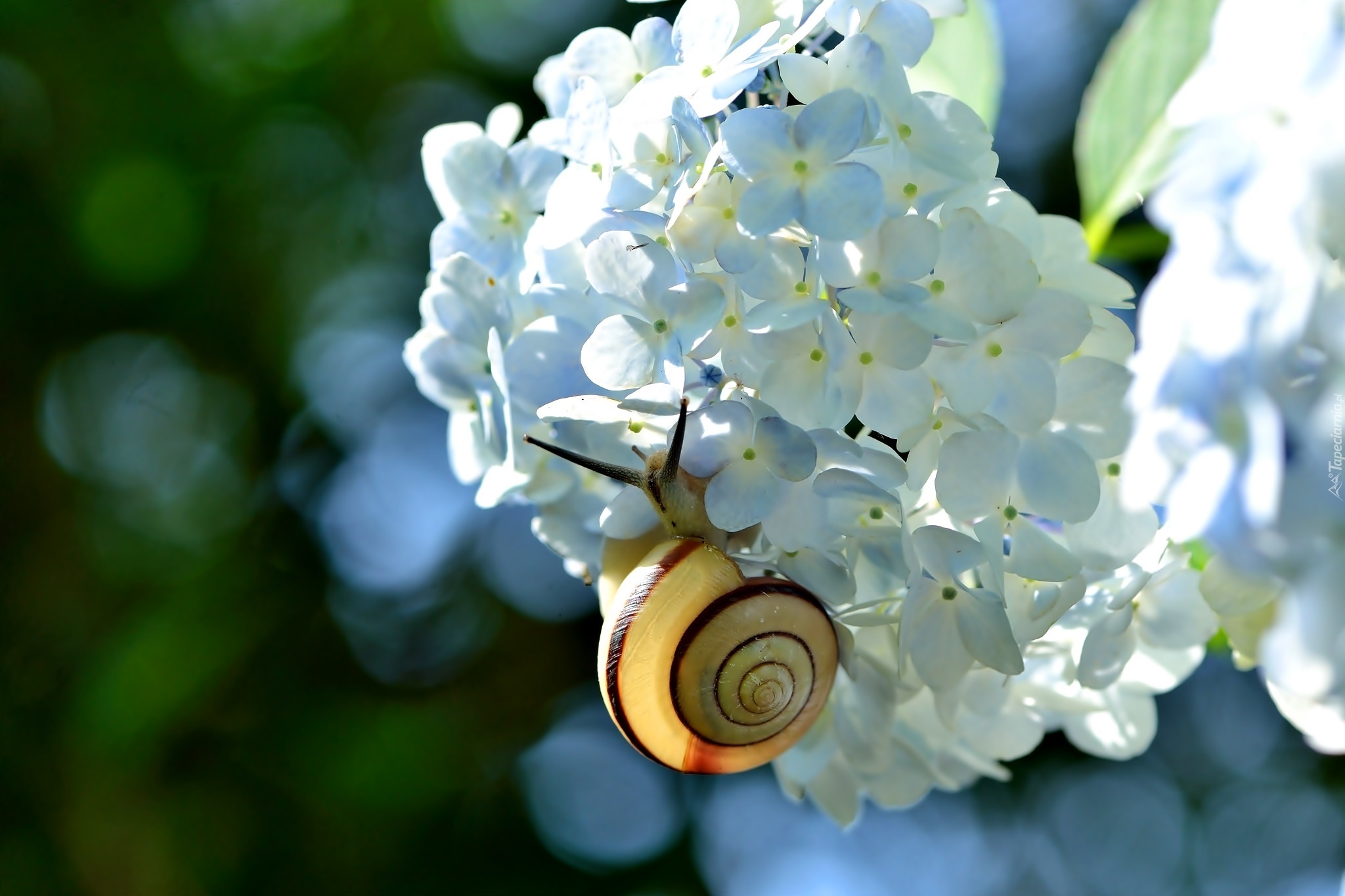 Edytor tapety: Ślimak, Biała, Hortensja