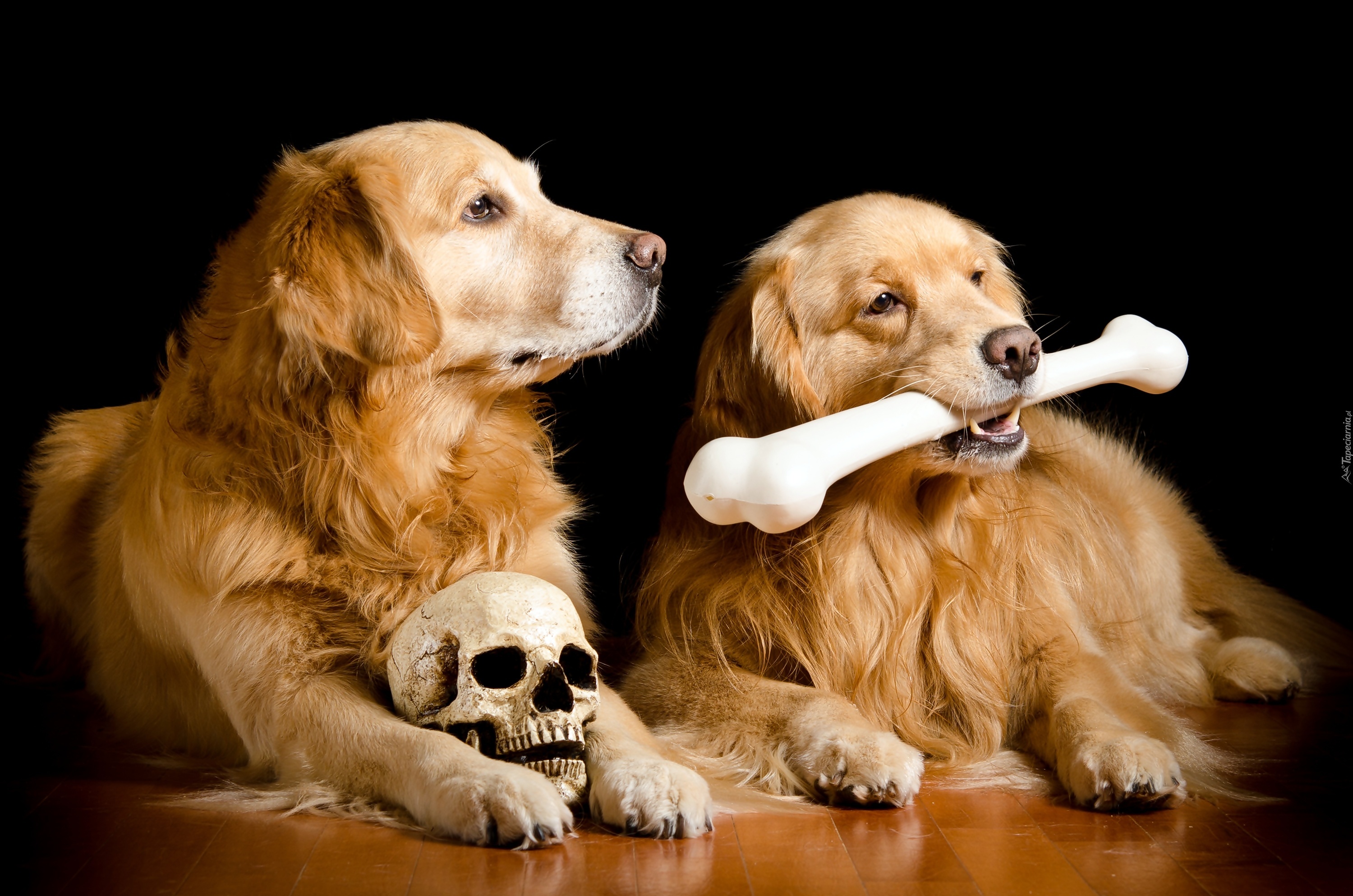 Edytor tapety: Dwa, Pieski, Kość, Czaszka