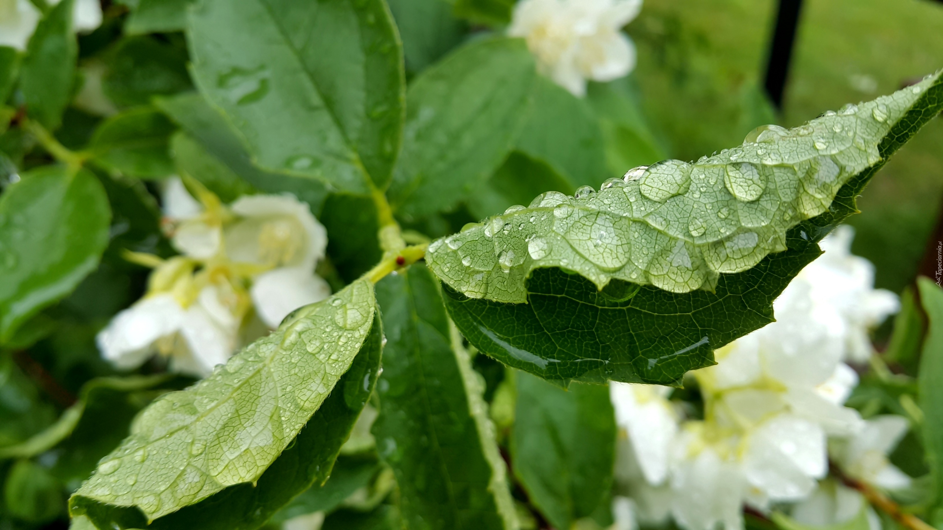 Edytor tapety: Kwiaty, Jaśminu, Listki, Krople, Deszczu