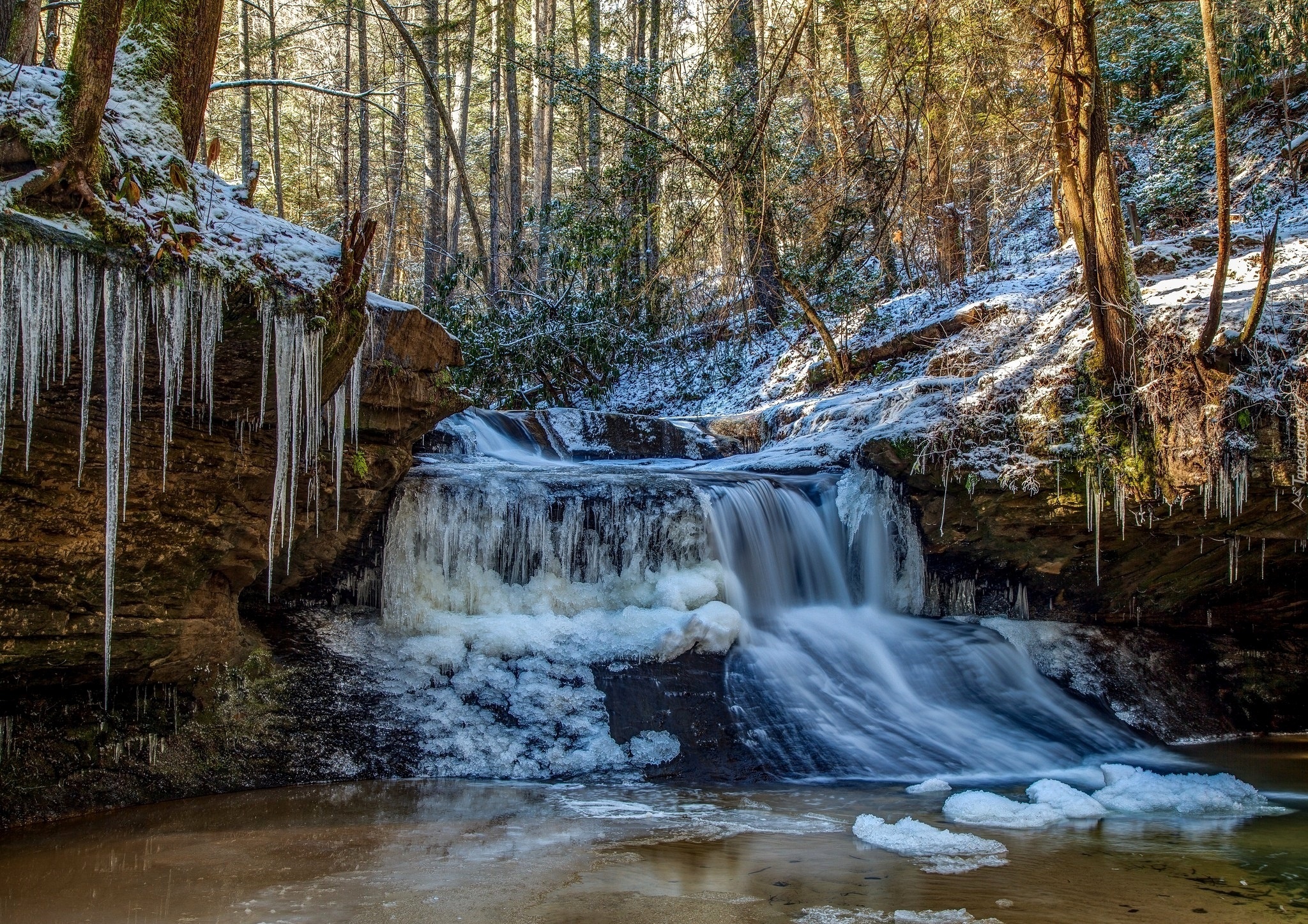 Edytor tapety: Las, Wodospad, Sople, Lodu