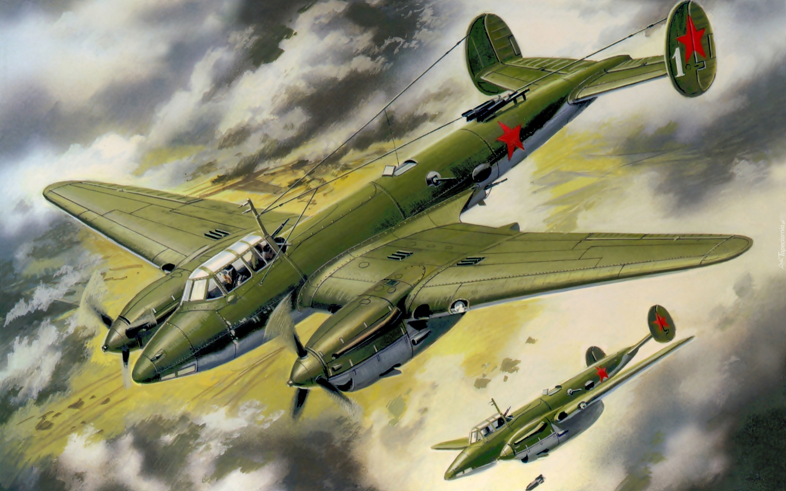 Edytor tapety: Samolot, Bombowiec, Pe-2, Niebo