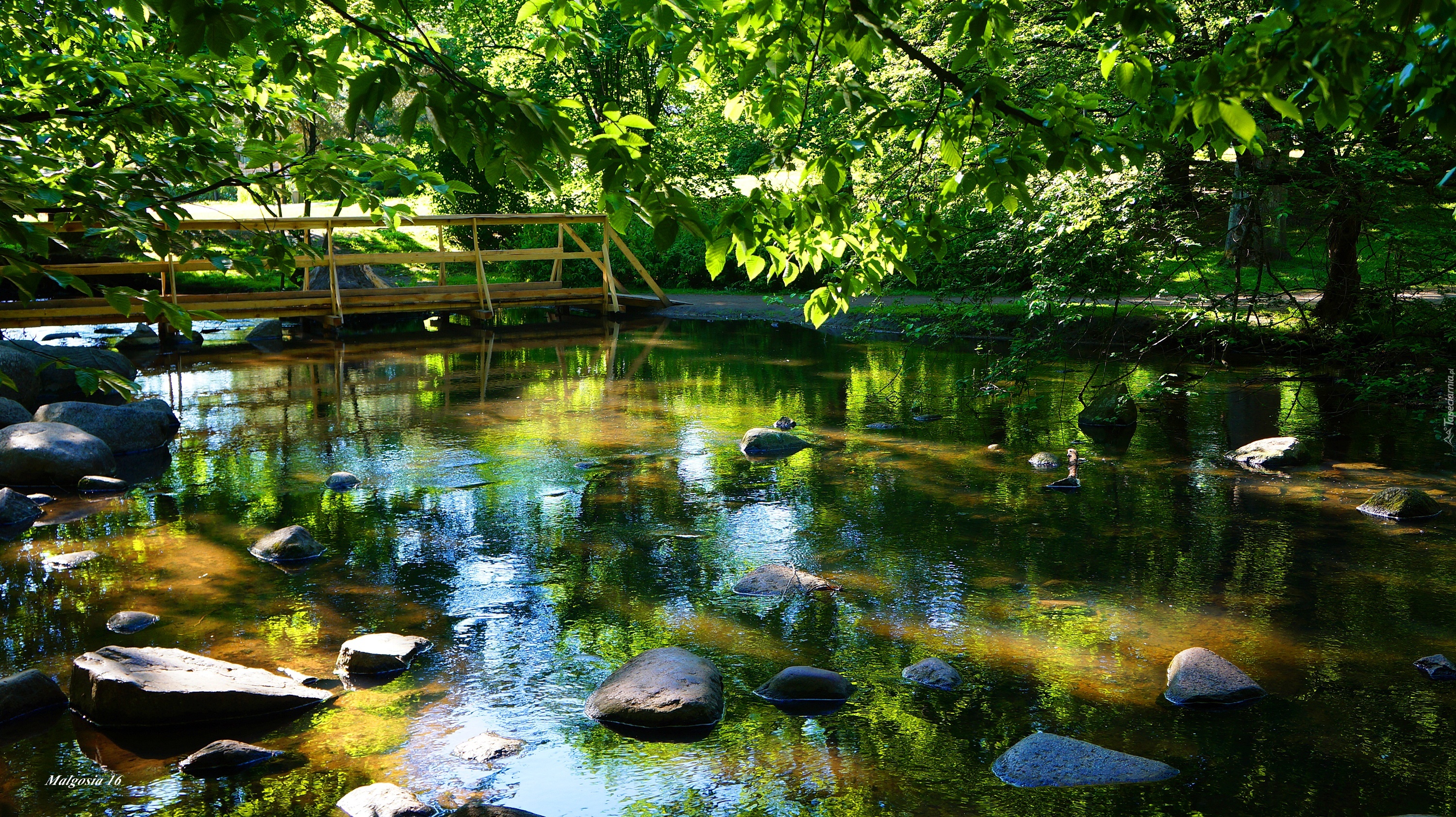 Edytor tapety: Polska, Gdańsk, Park Oliwski im. Adama Mickiewicza, Mostek, Strumyk