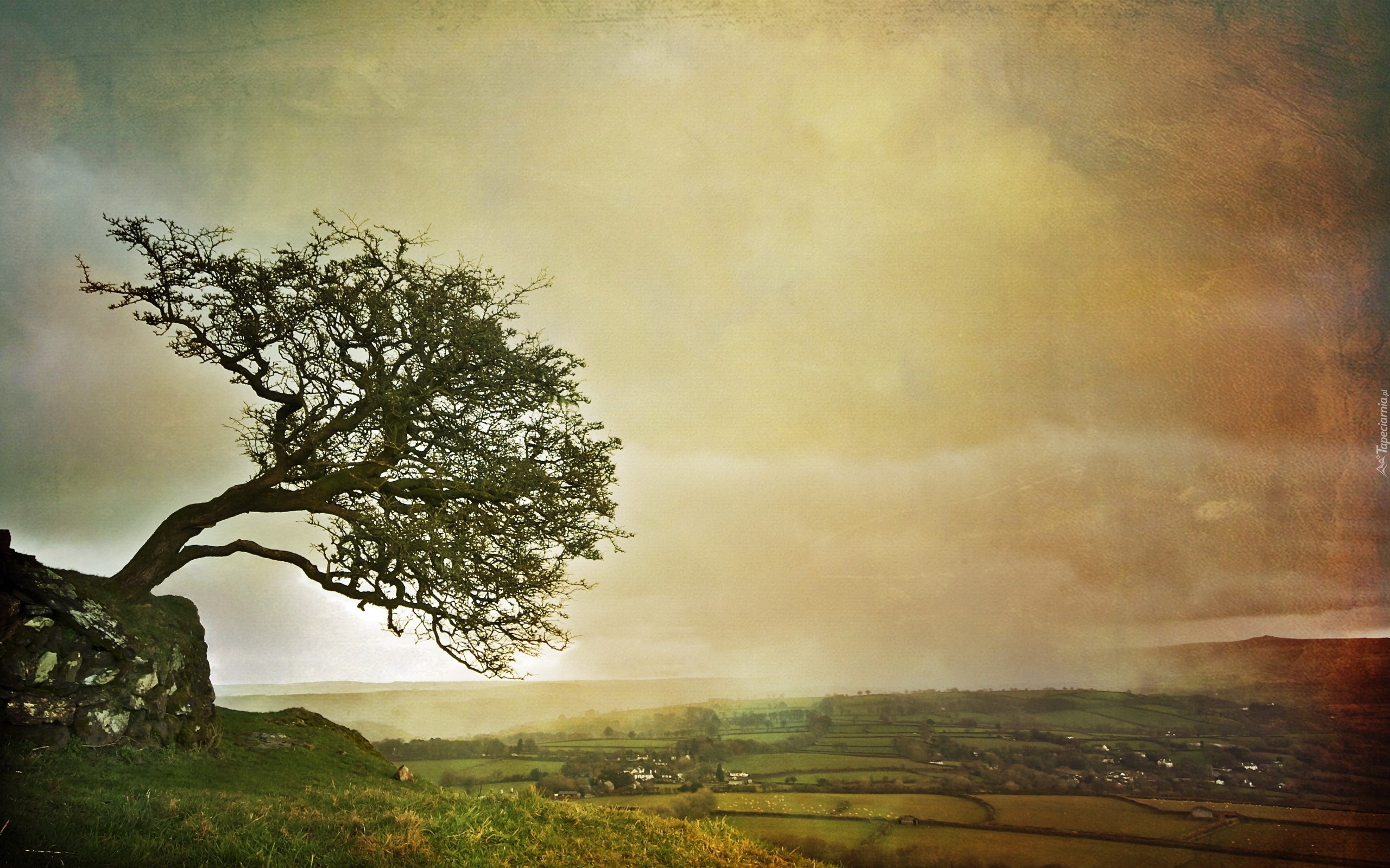 Edytor tapety: Drzewo, Dolina, Trawa, Niebo, Pochmurne
