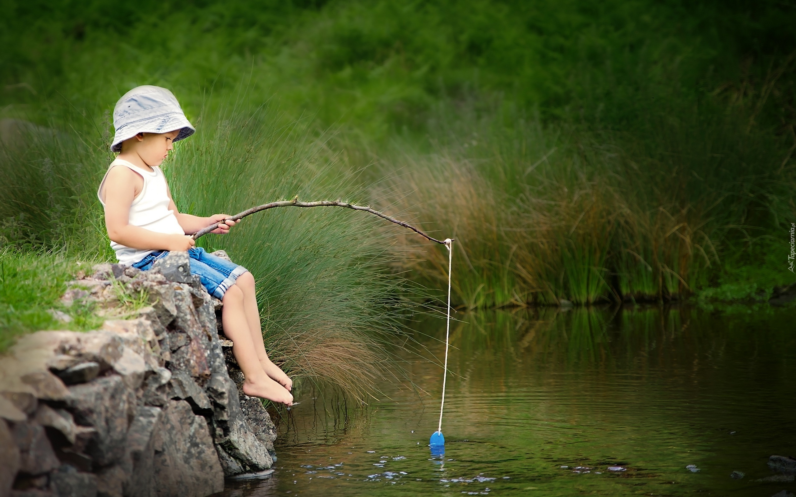 Edytor tapety: Dziecko, Staw, Wędka