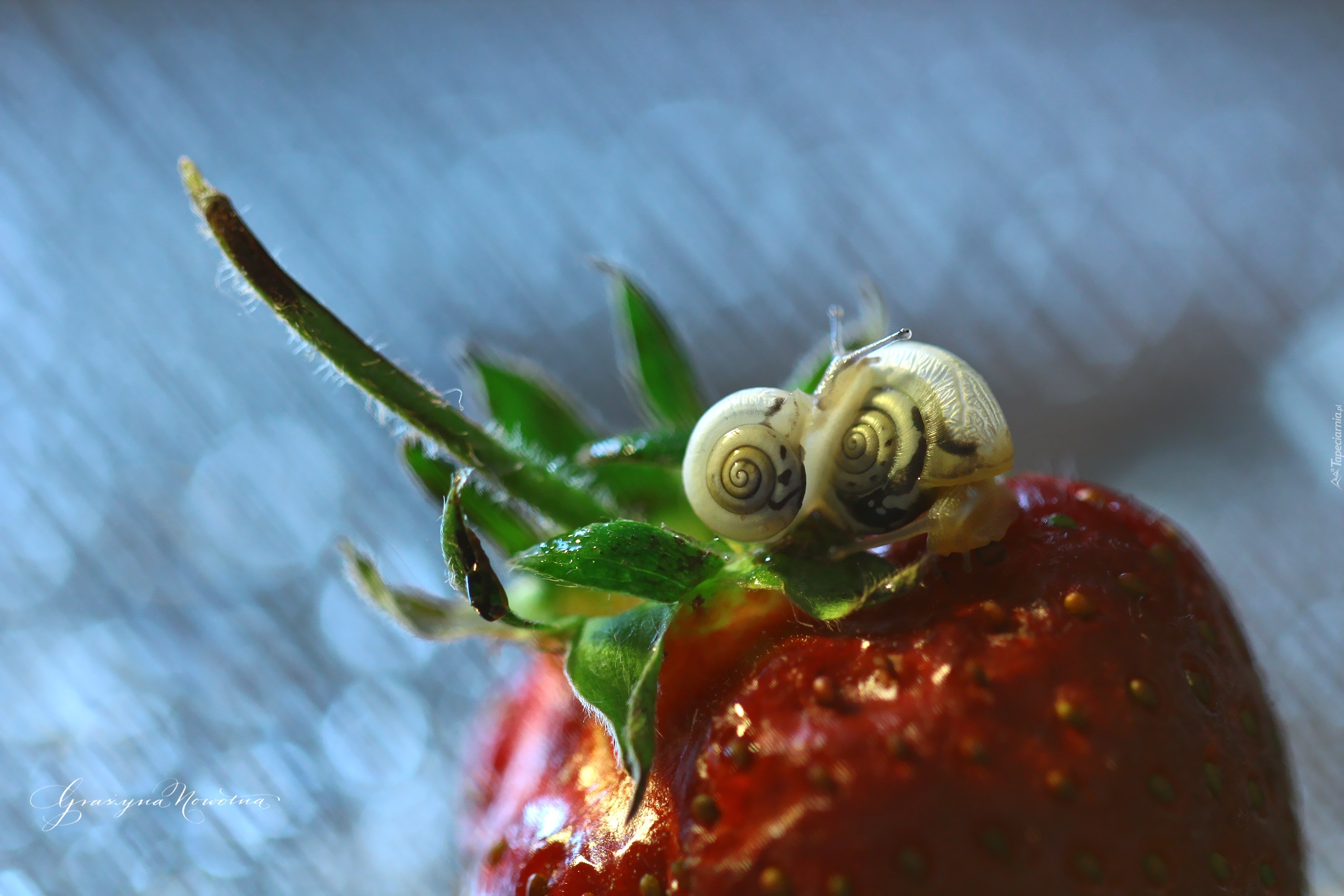 Edytor tapety: Dwa, Ślimaki, Truskawka