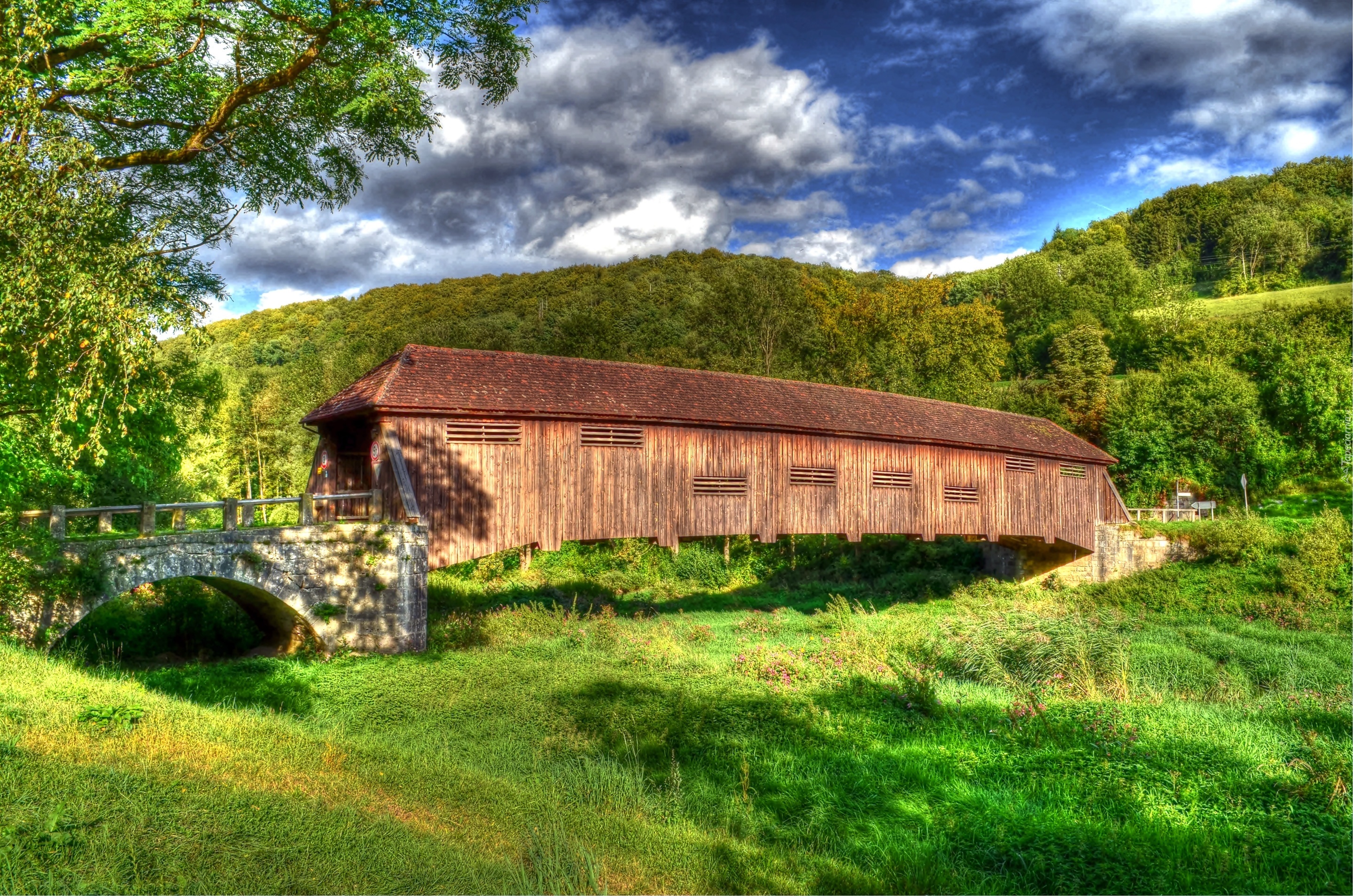 Edytor tapety: Góry, Las, Szopa, Łąka, Most