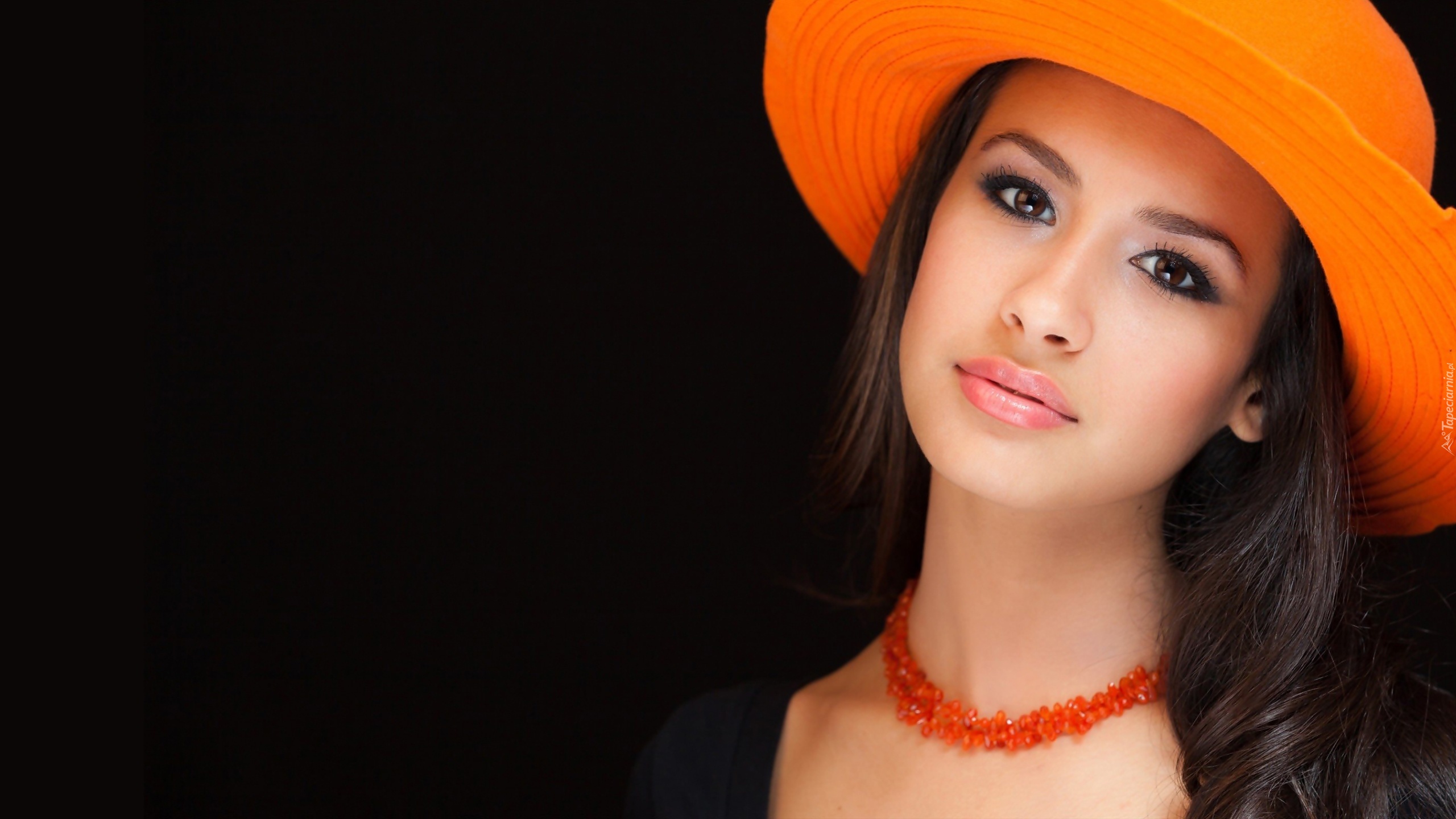 Edytor tapety: Zamyślona, Piękna, Brunetka, Kapelusz, Makijaż, Biżuteria