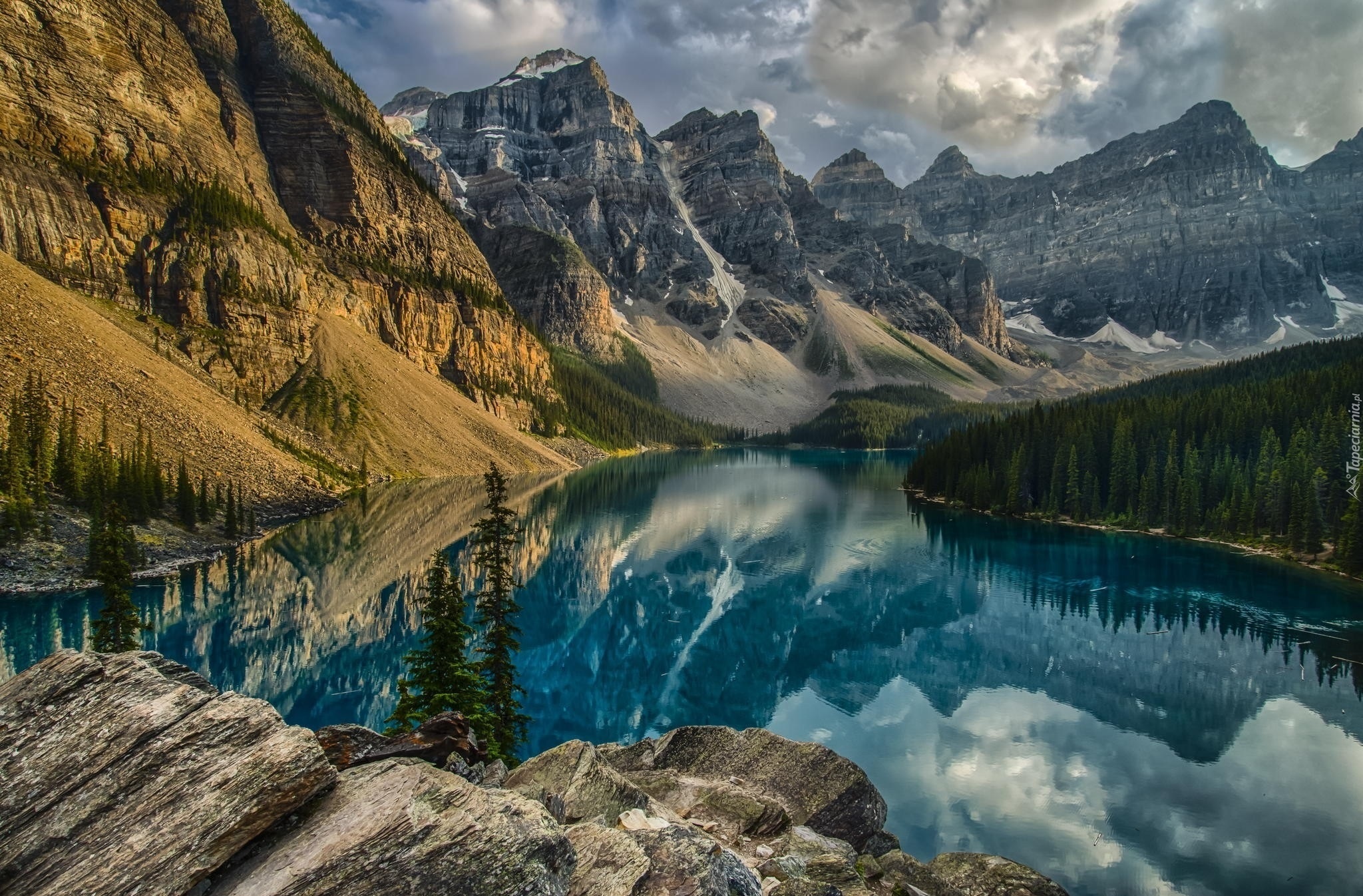 Edytor tapety: Góry, Jezioro, Drzewa, Odbicie
