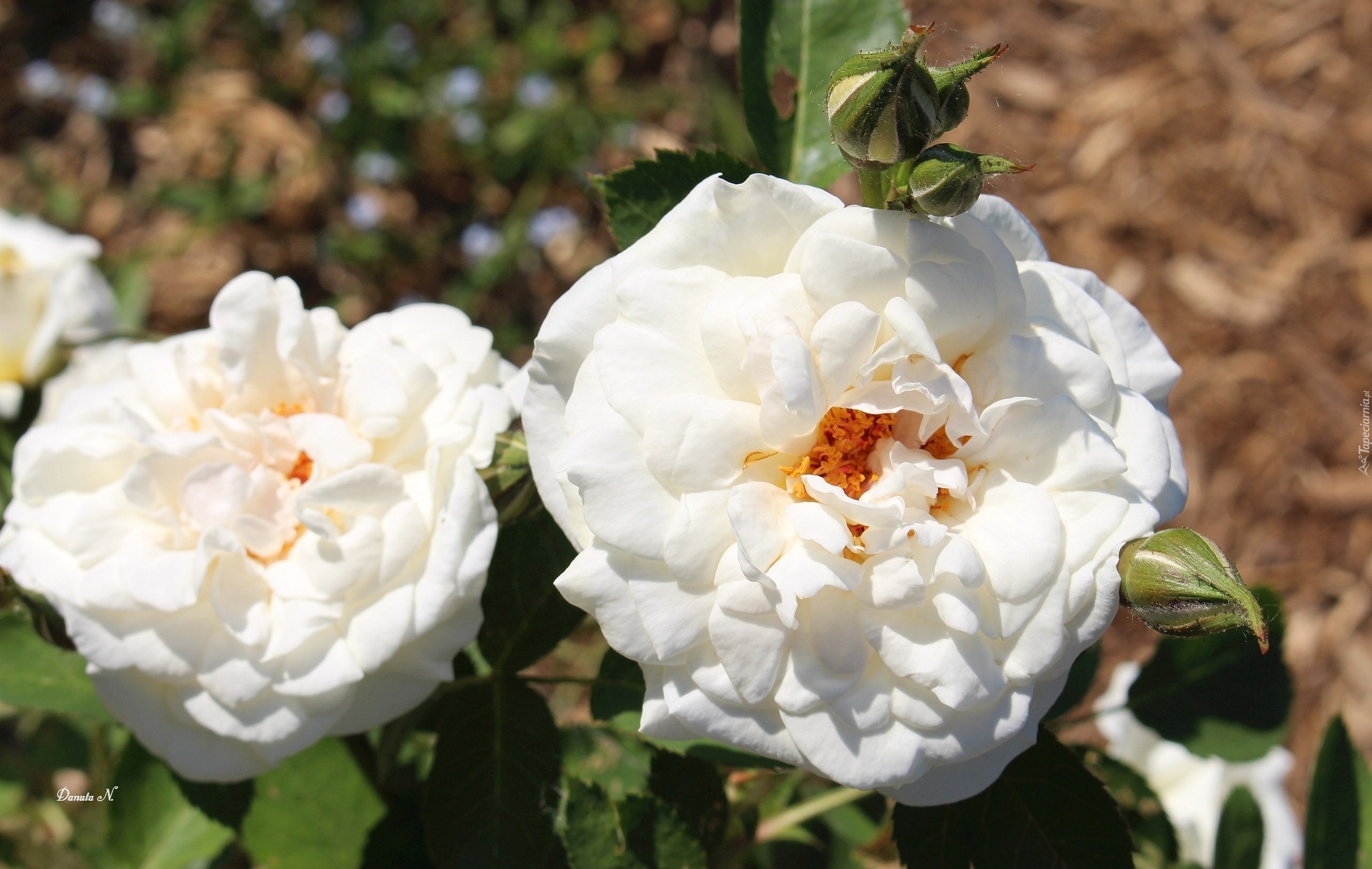 Edytor tapety: Dwie, Róże, Białe, Pąki, Liście
