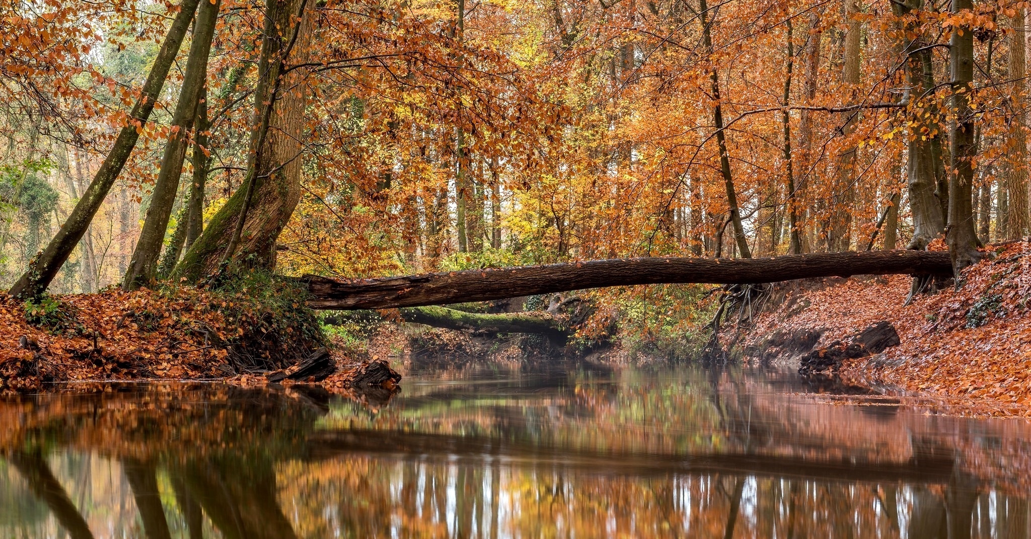 Edytor tapety: Jesień, Las, Rzeka, Złamane, Drzewo