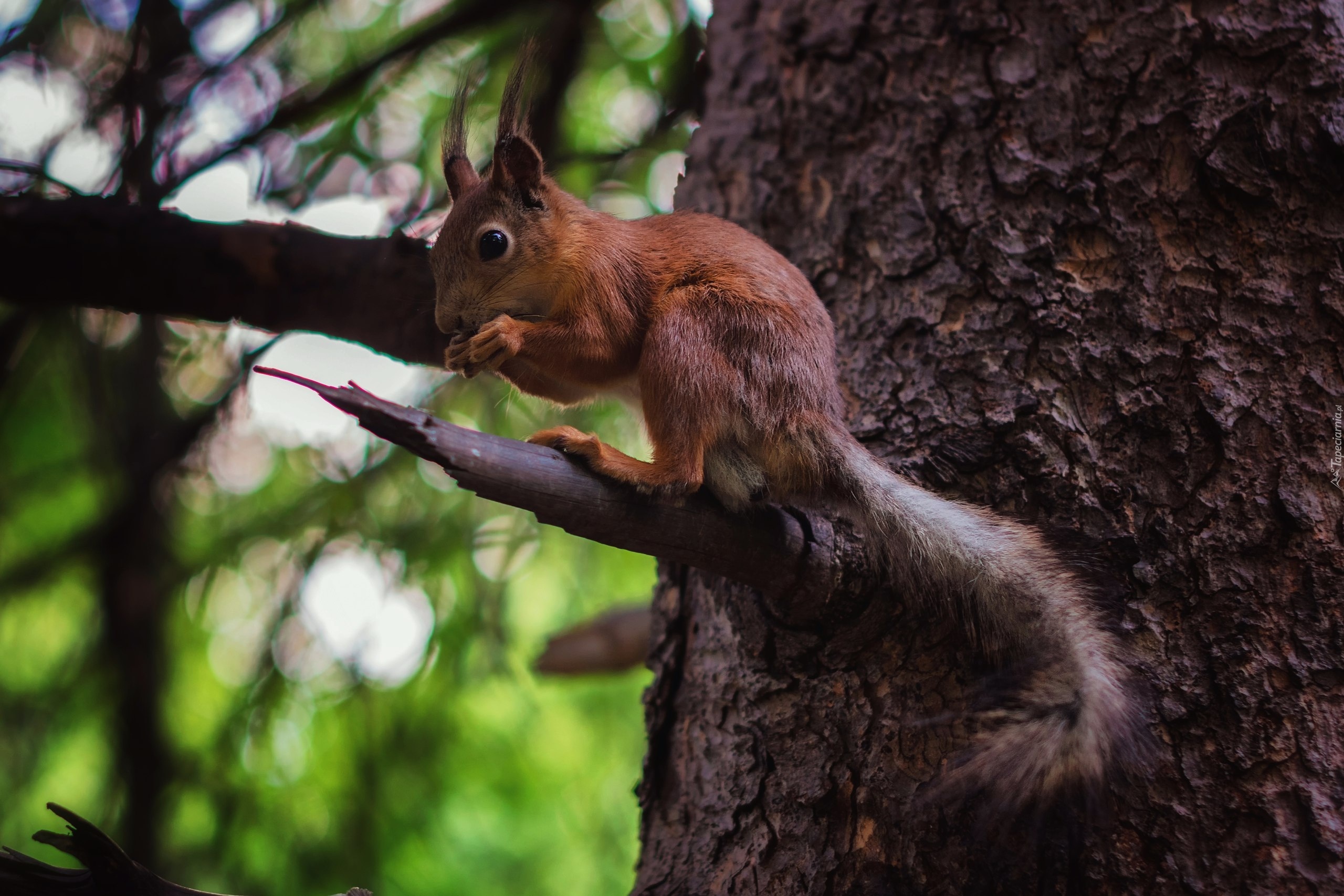 Edytor tapety: Wiewiórka, Drzewo, Gałąź