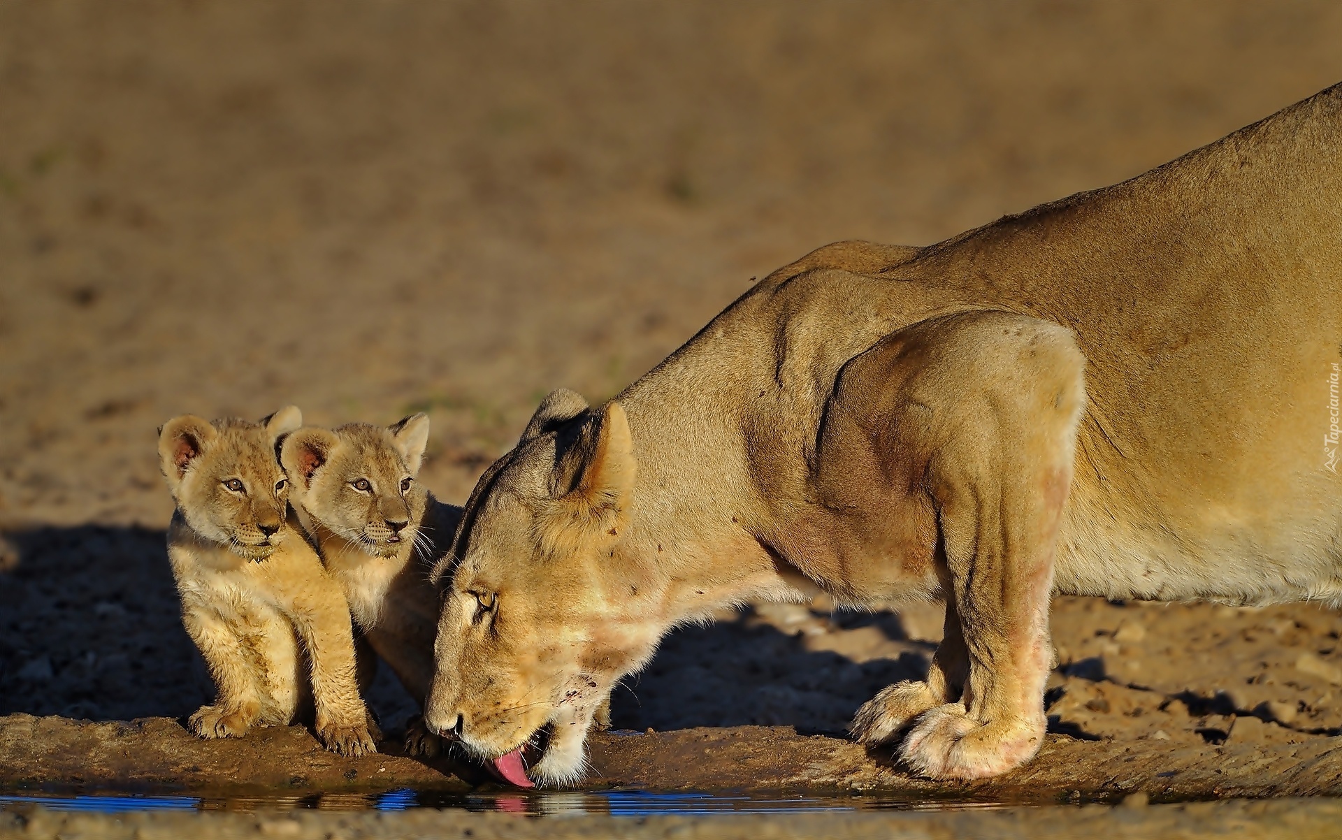 Edytor tapety: Lwica, Lwiątka, Wodopój