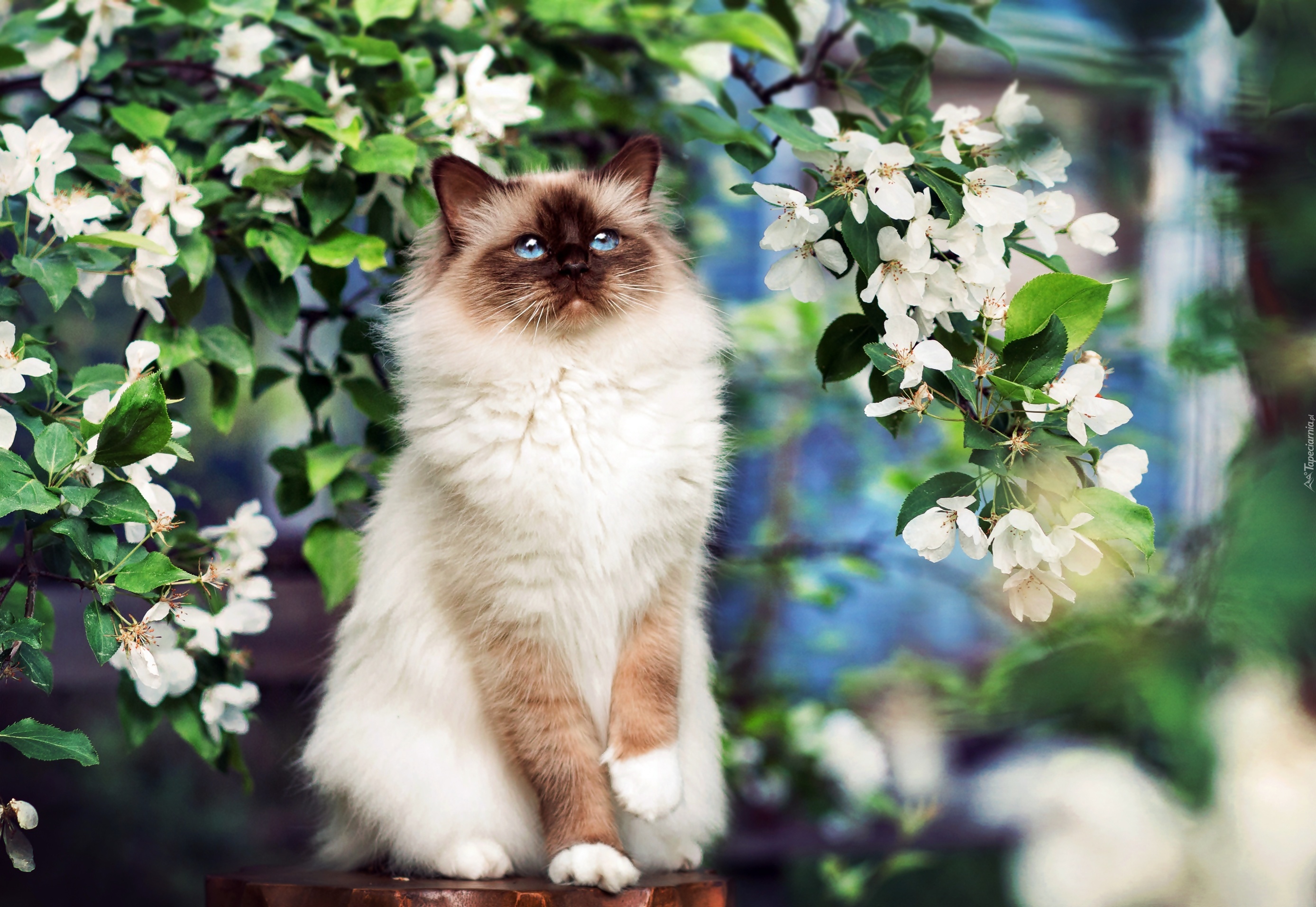 Edytor tapety: Kot, Syjamski, Kwitnące, Drzewo, Dom, Wiosna