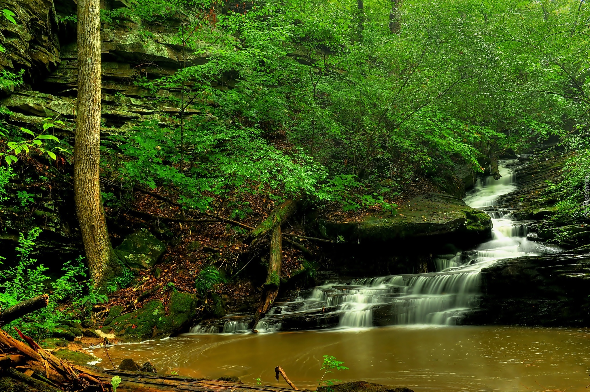 Edytor tapety: Wodospad, Rzeka, Skały, Zielony, Las