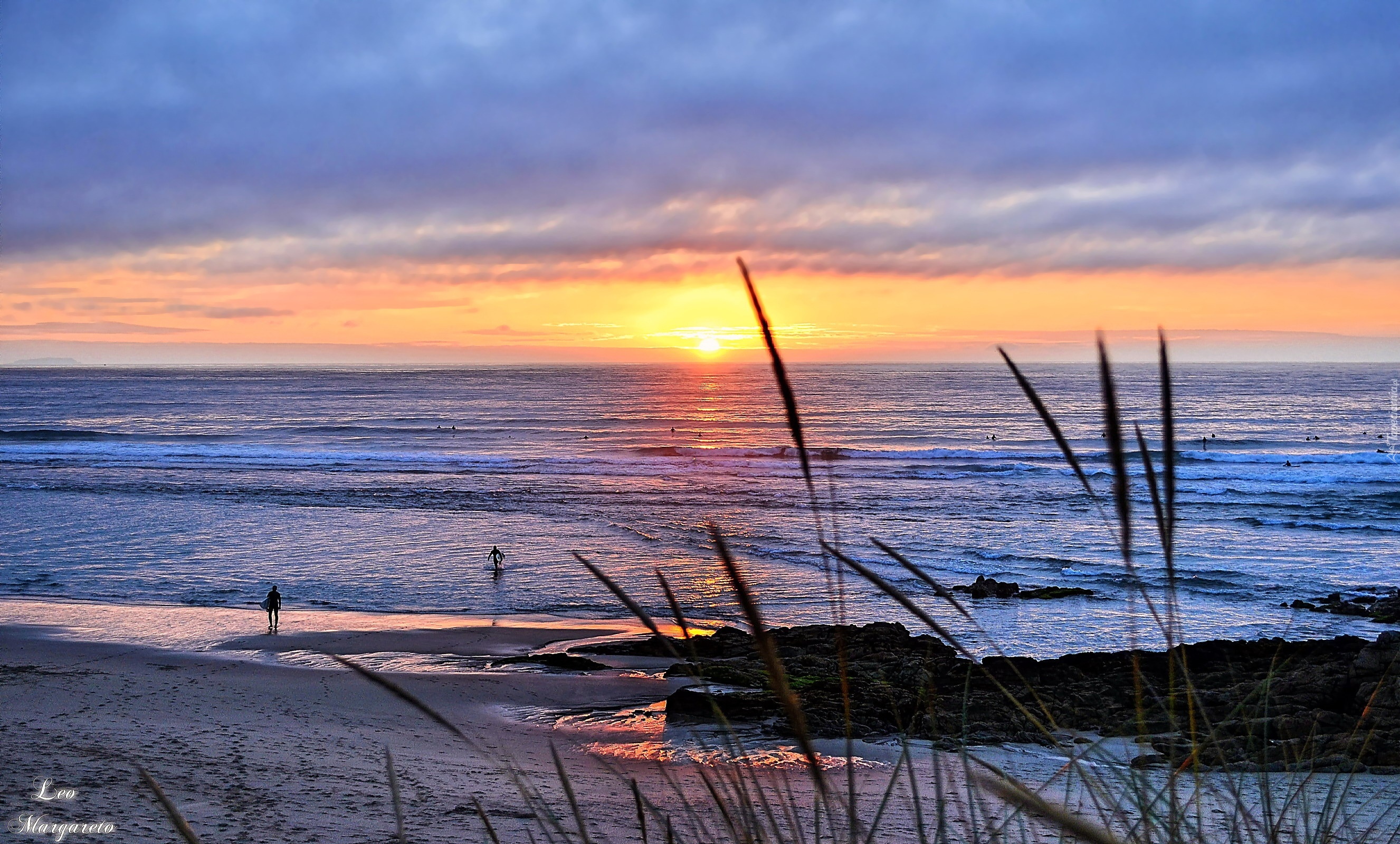 Edytor tapety: Morze, Zachód słońca, Roślinność