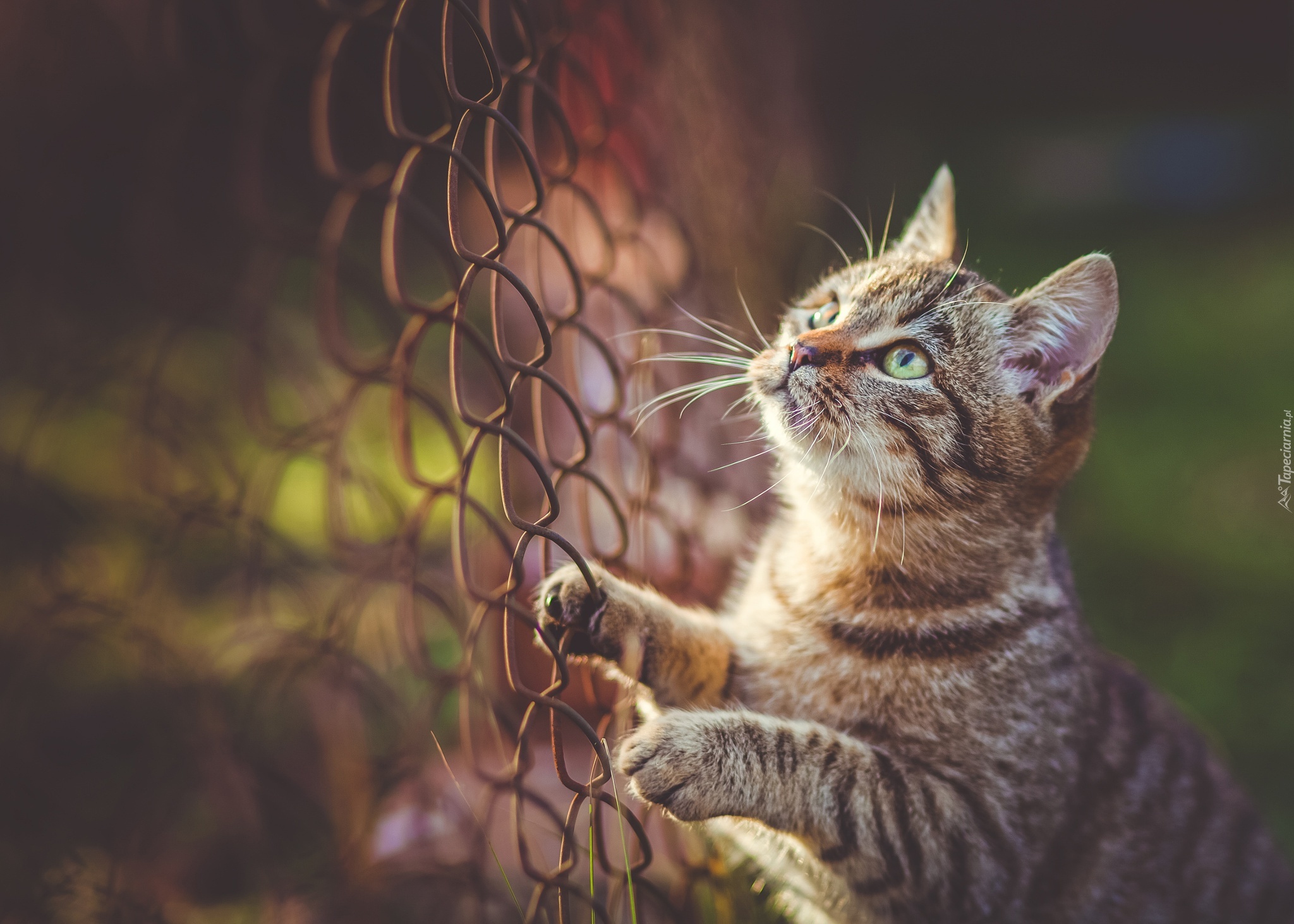 Edytor tapety: Kot, Zielone, Oczy, Ogrodzenie, Siatka, Druciana, Rozmycie