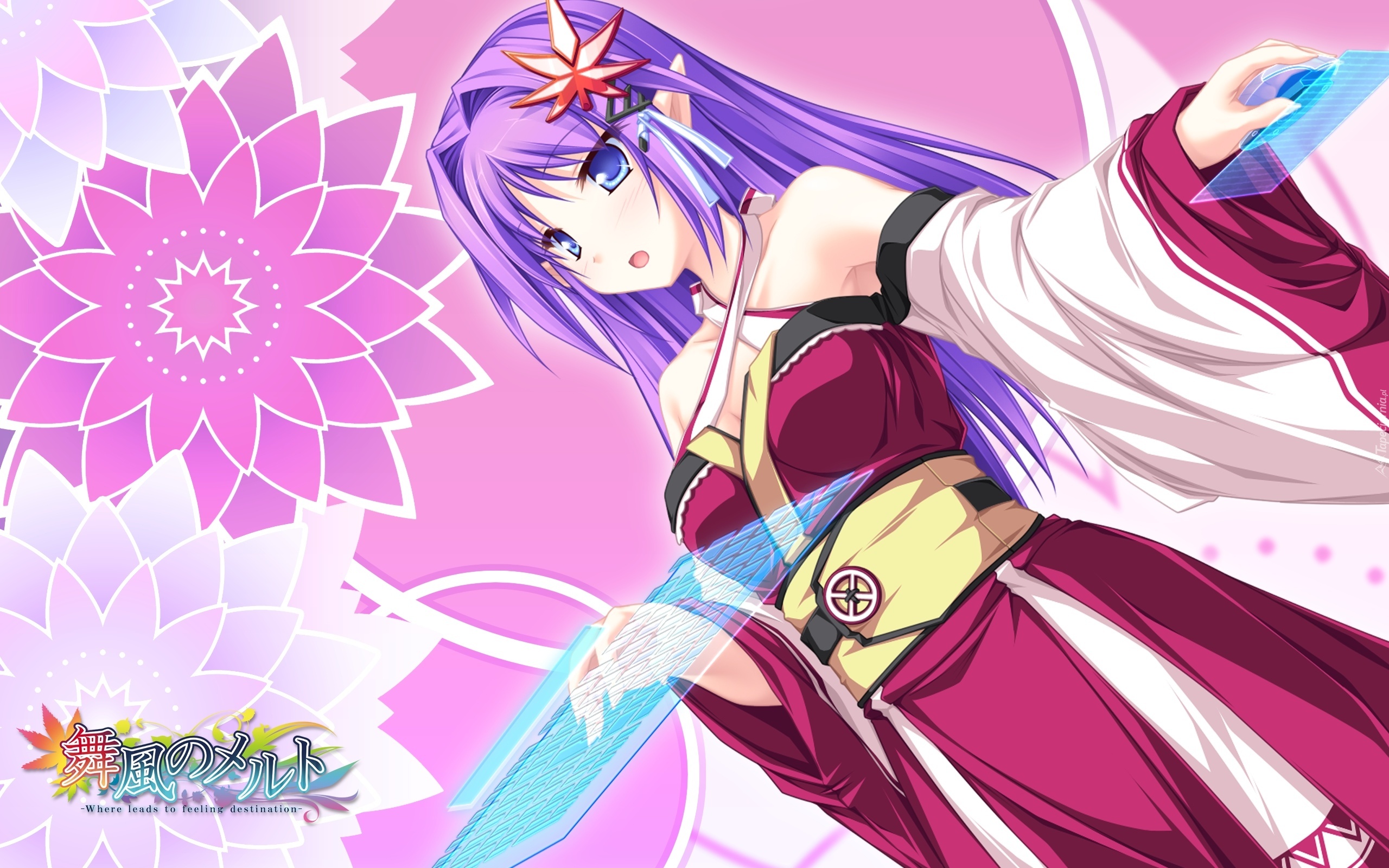 Edytor tapety: Dziewczyna, Klawiatura, Myszka, Kwiaty, Napis, Manga, Anime