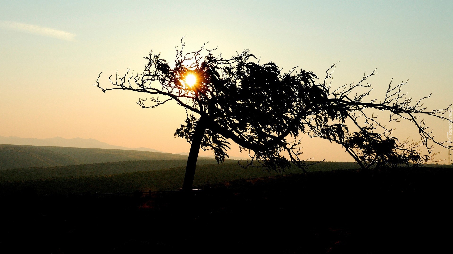 Edytor tapety: Pole, Drzewo, Zachód Słońca